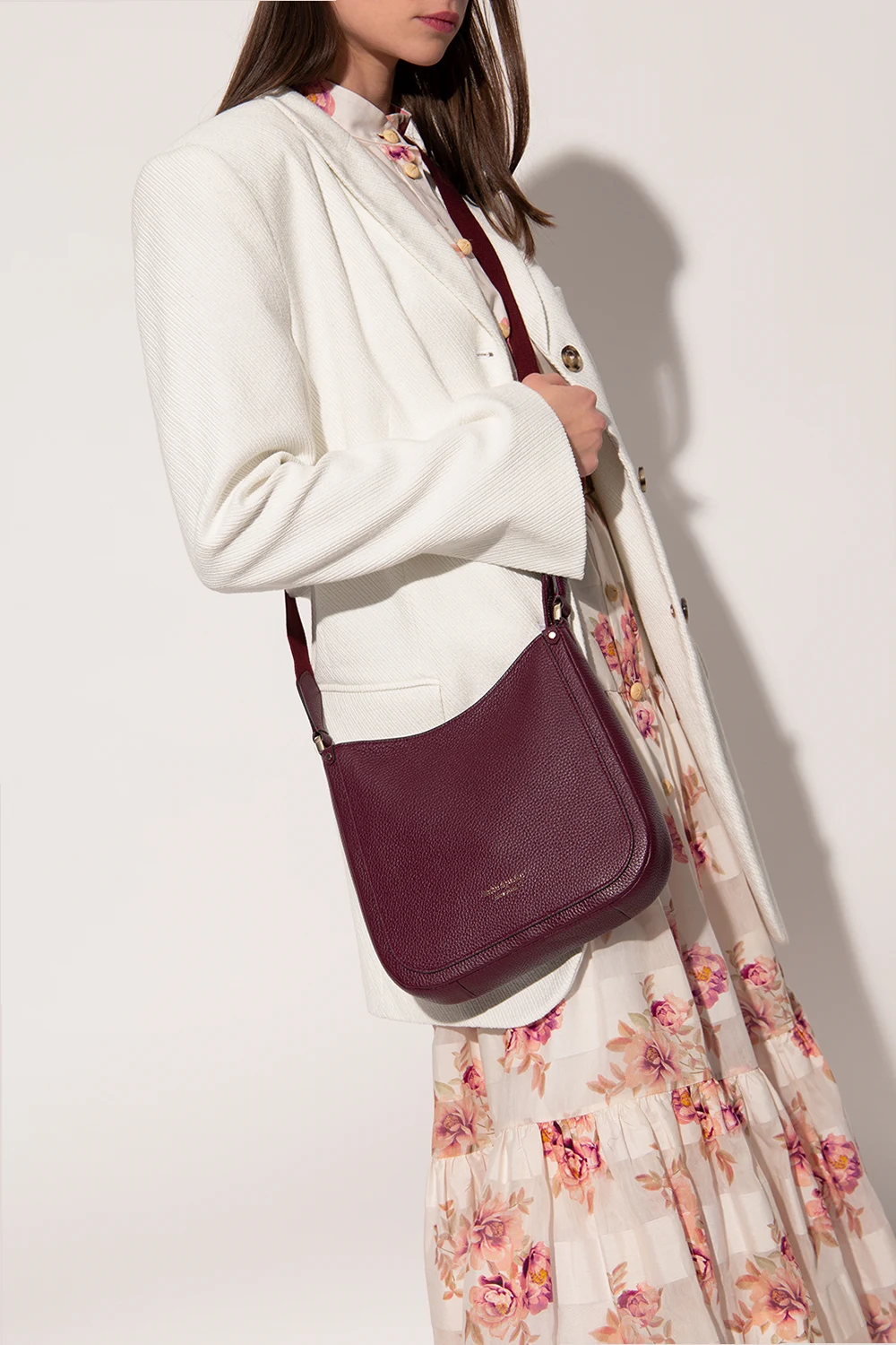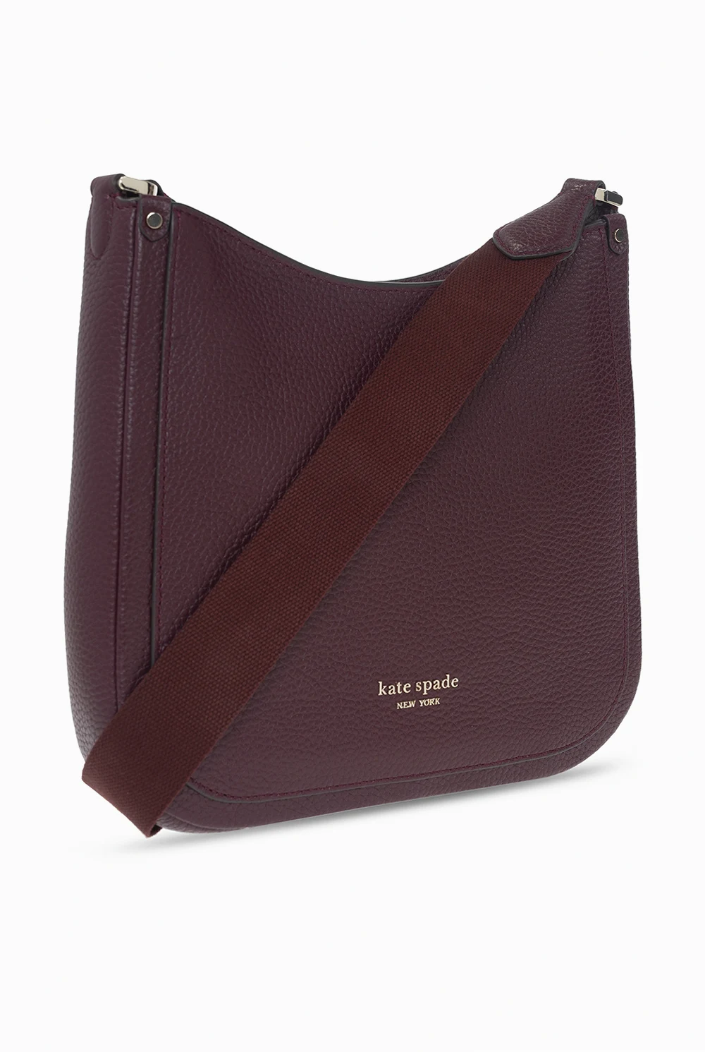 Maroon ‘Roulette Medium’ shoulder bag from Kate Spade. Crafted from cow leather, this model fastens with a zip and is complete with a logo appliqué, back slip pocket, adjustable strap, gold-tone metal hardware and one internal compartment with one slip pocket and one zip pocket.
