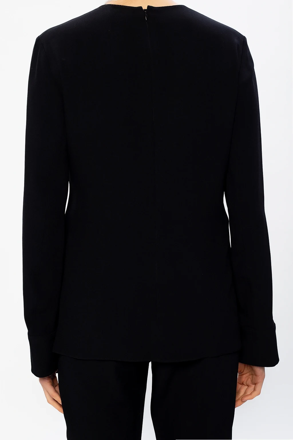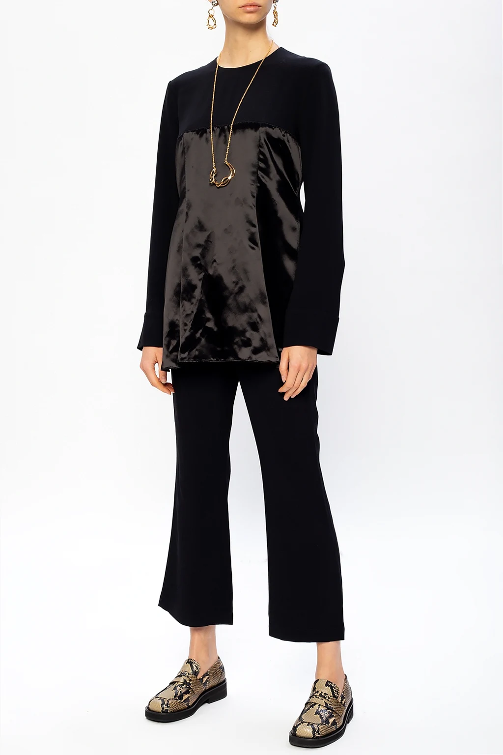 Black top from Marni. Fastened at the back with a zip, this long sleeved design features contrasting panels.