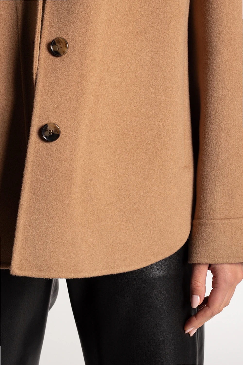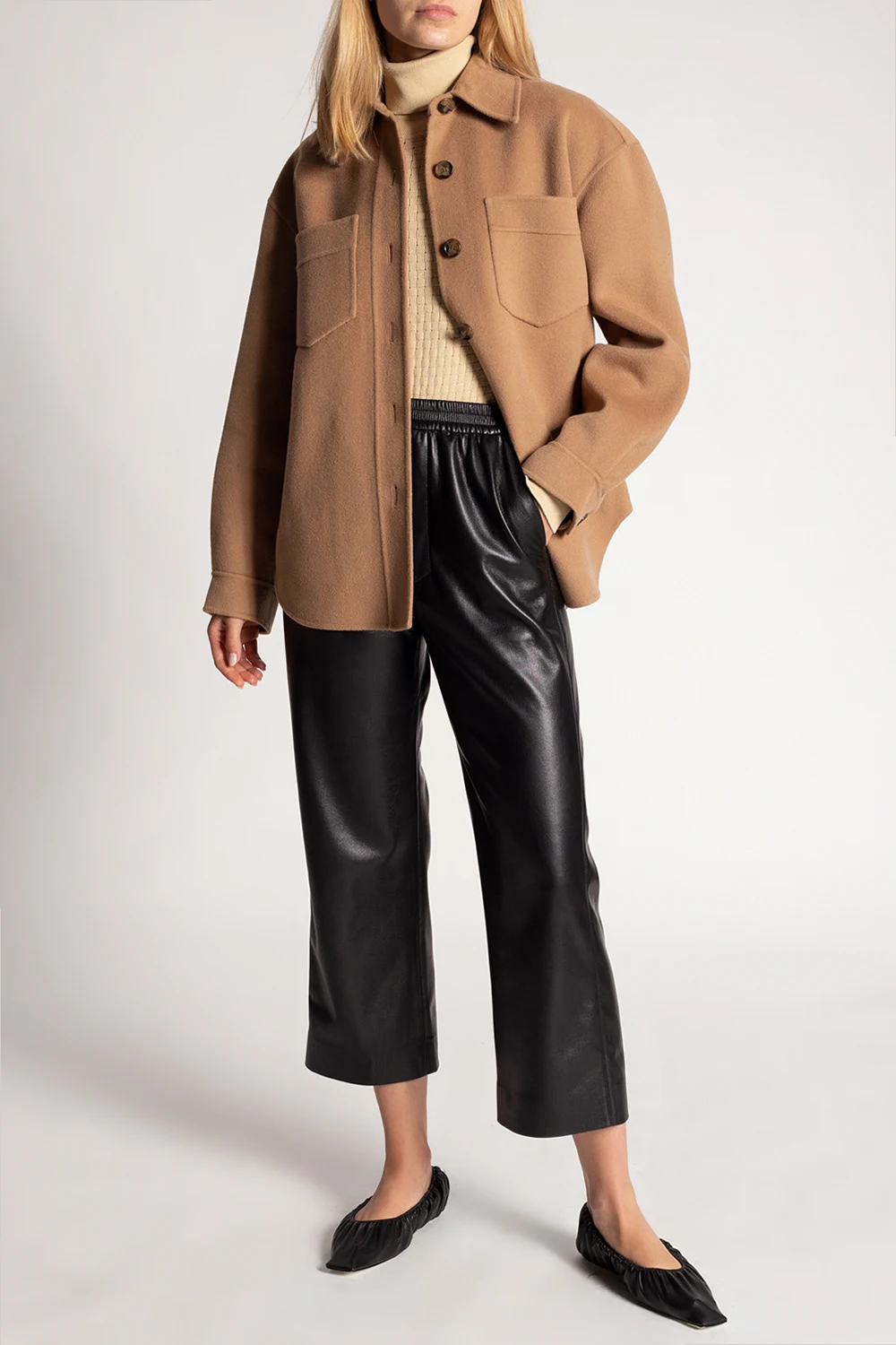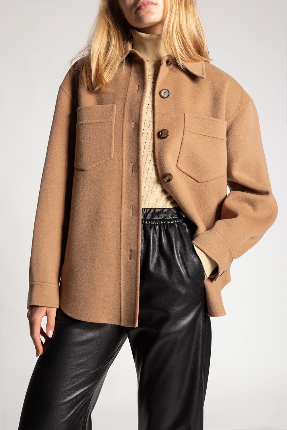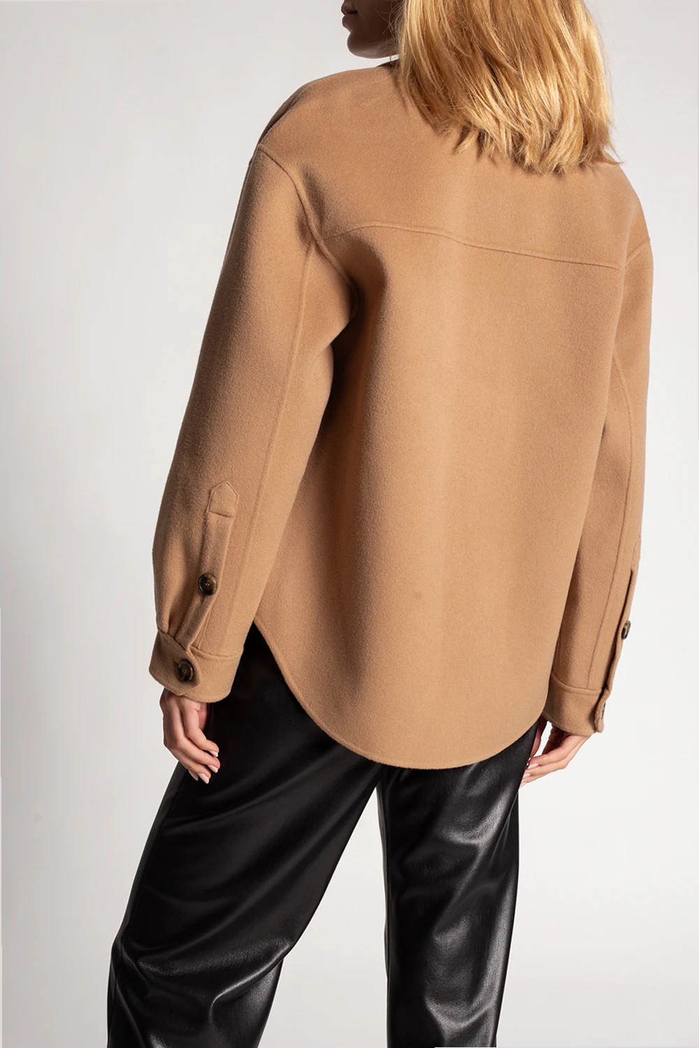 Light brown jacket with collar from Nanushka. Crafted from a wool and silk blend, this garment features button fastenings and four slip pockets.