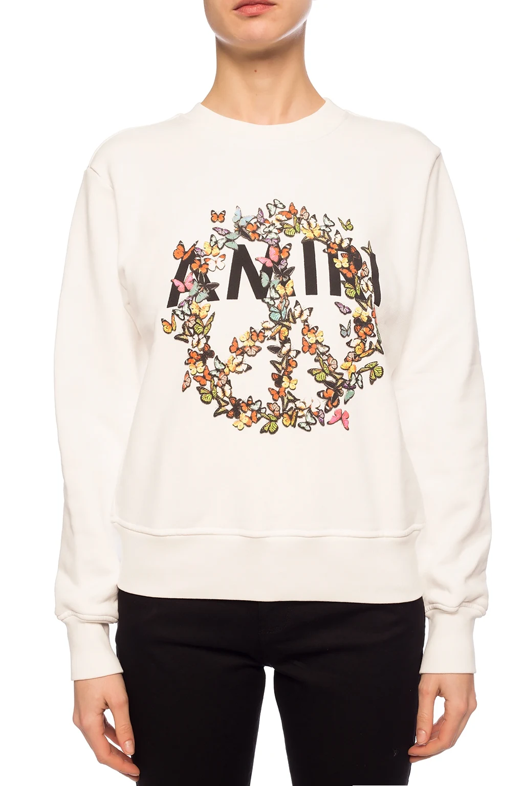 White crewneck sweatshirt from Amiri. Made of cotton. Embellished with a colourful graphic print with logo. Finished with ribbed trims.
