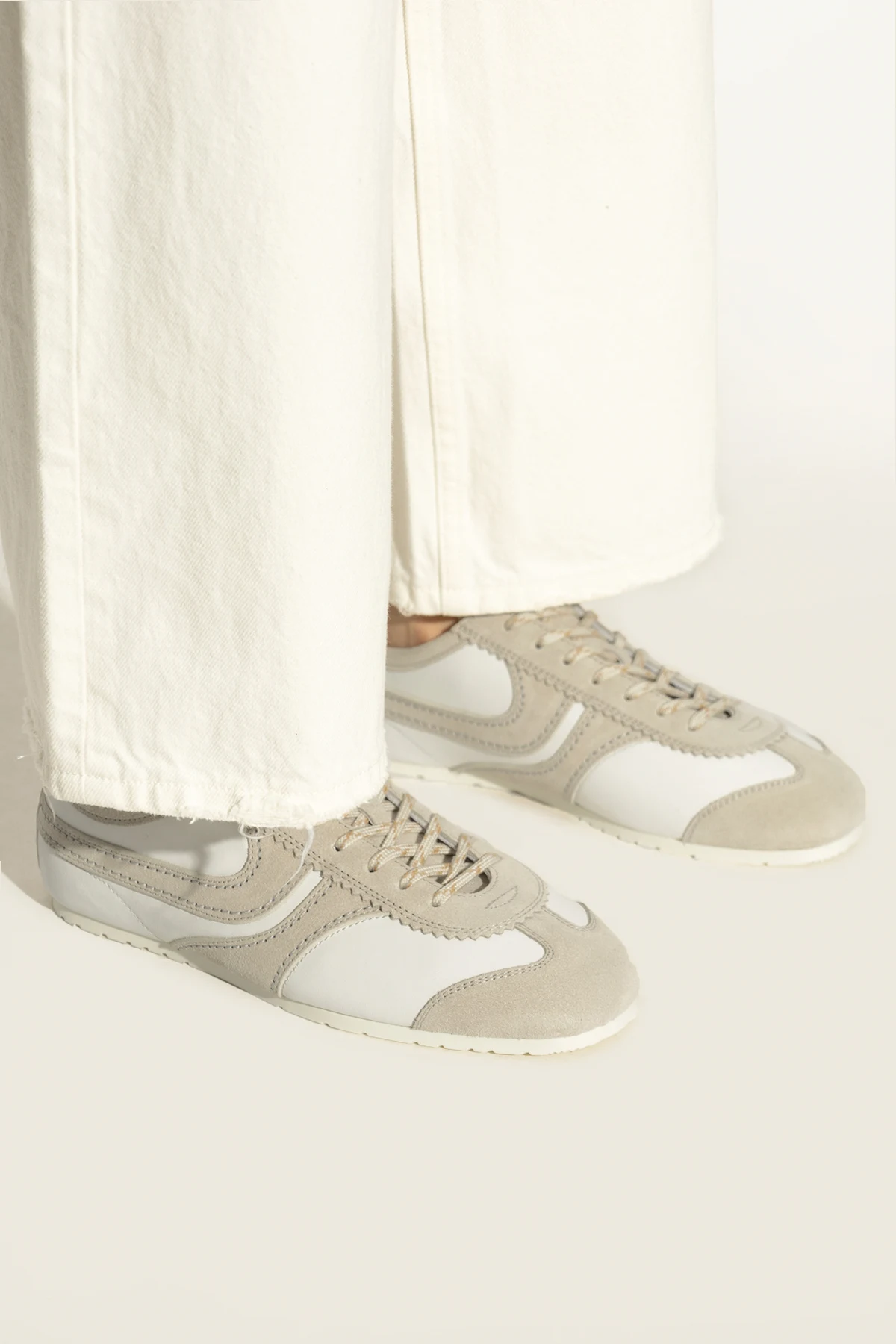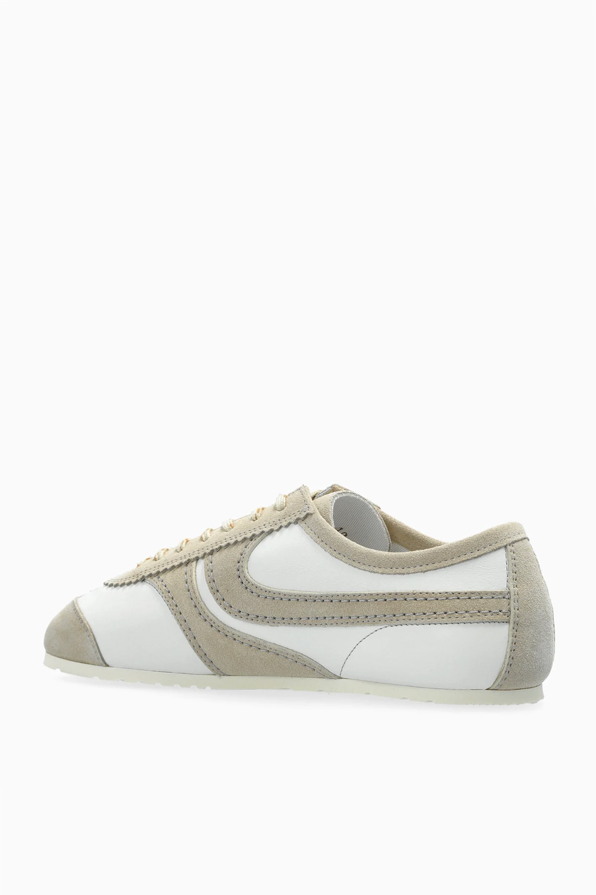 Hergestellt aus hochwertigem Leder und veredelt mit beigen Wildledereinsätzen, vereinen diese Schuhe Ästhetik und Funktionalität auf harmonische Weise. Die dezente beige Farbgebung unterstreicht ihren exklusiven Charakter und die feine Signatur auf der Zunge ist das Markenzeichen des Designers, das als Symbol für das Prestige der Marke steht.