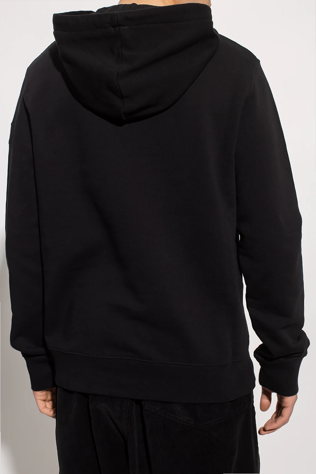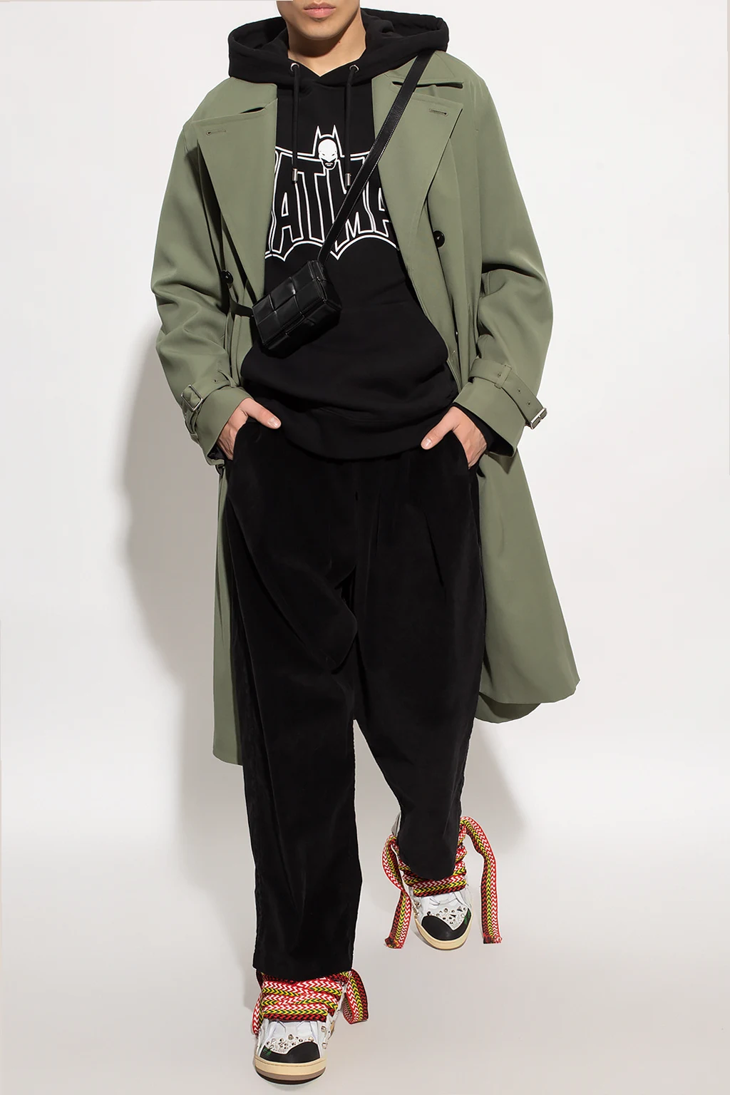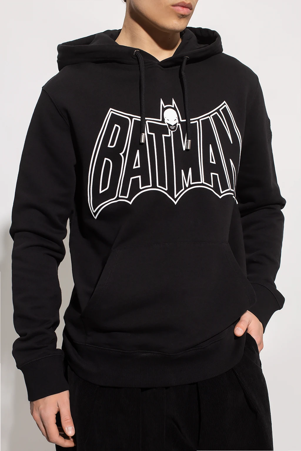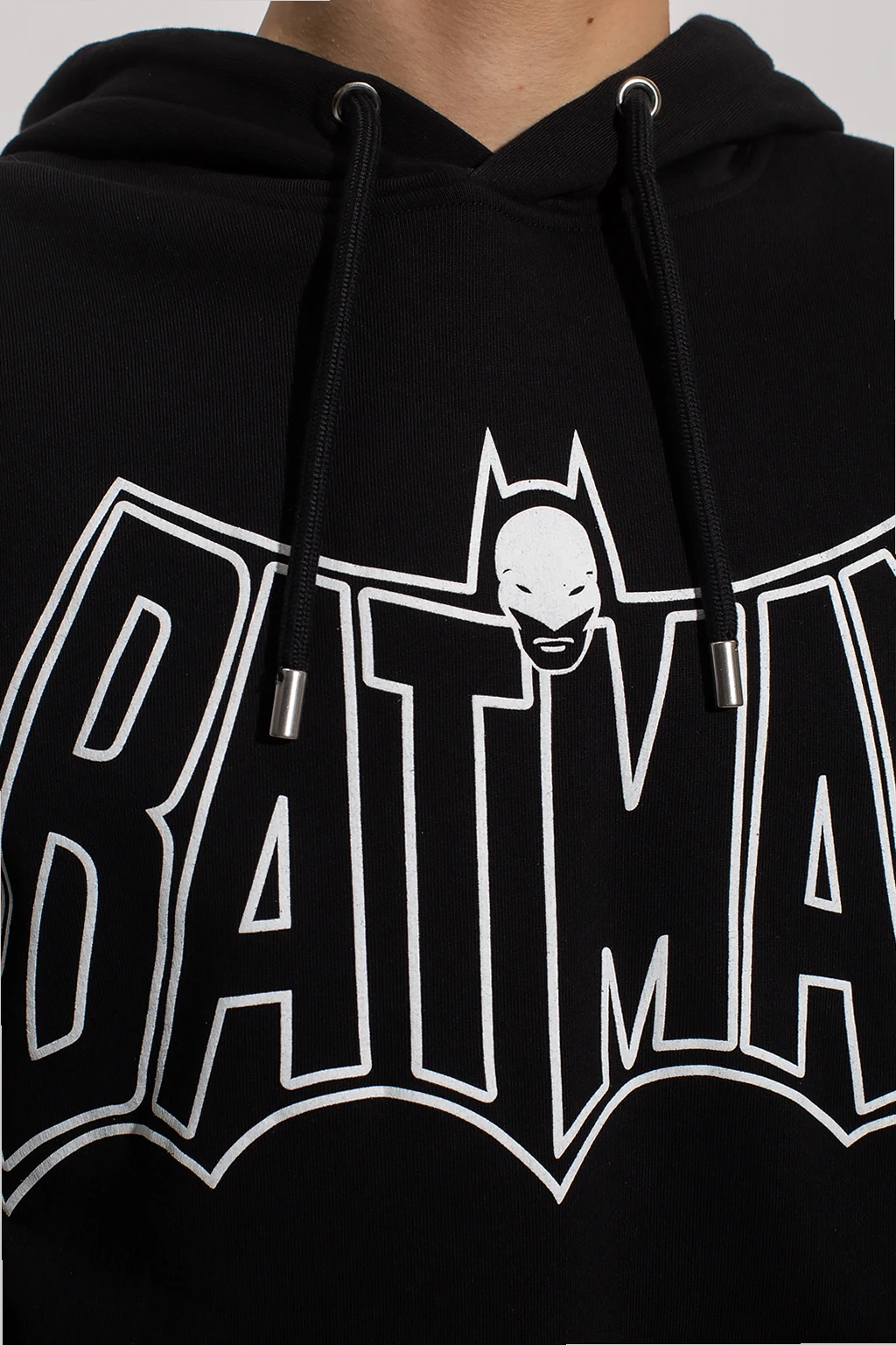 Black hoodie from Lanvin. Crafted from cotton, this garment features a drawstring hood, front pocket, white Batman print and ribbed trims at the hem and cuffs.