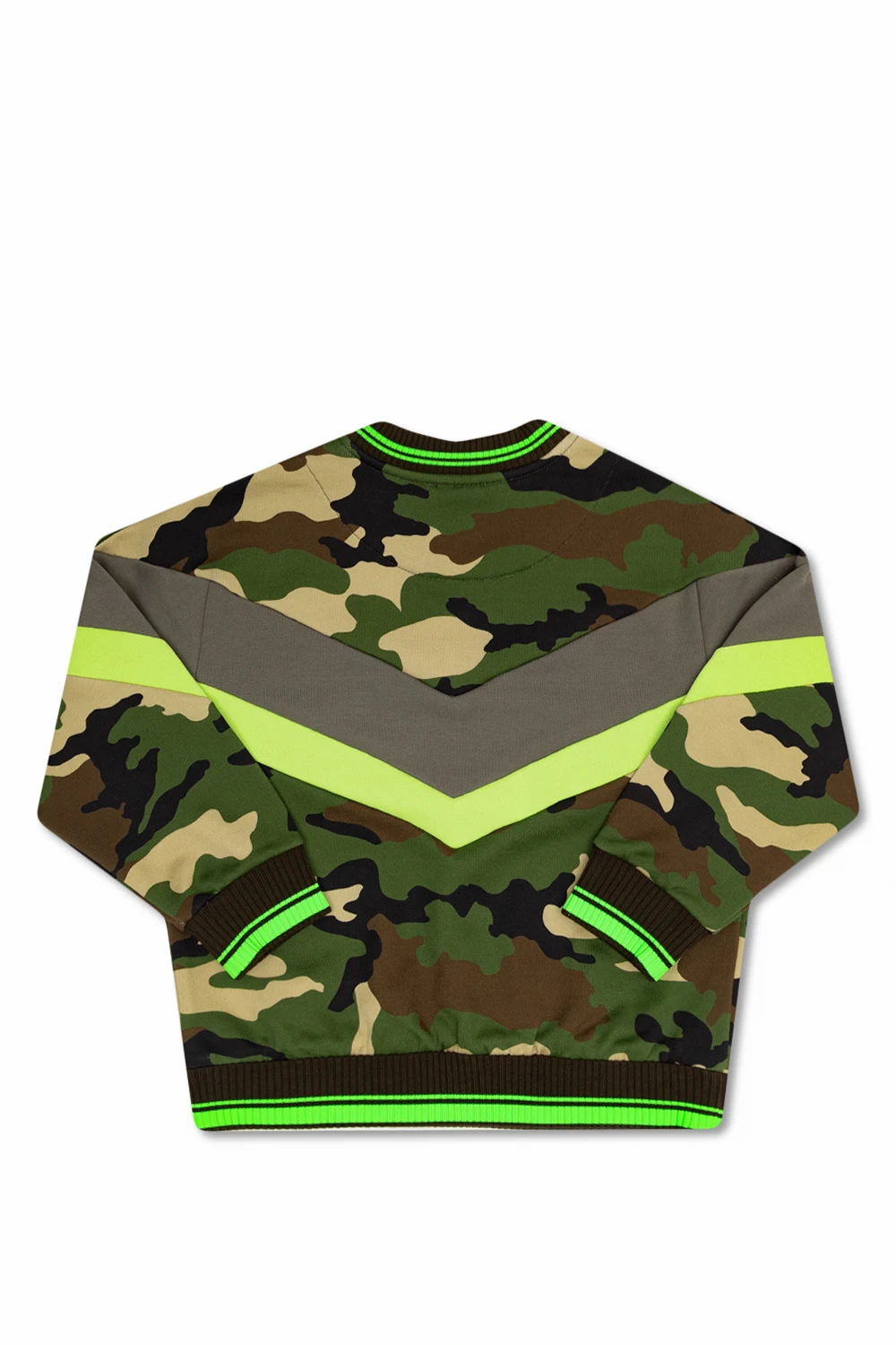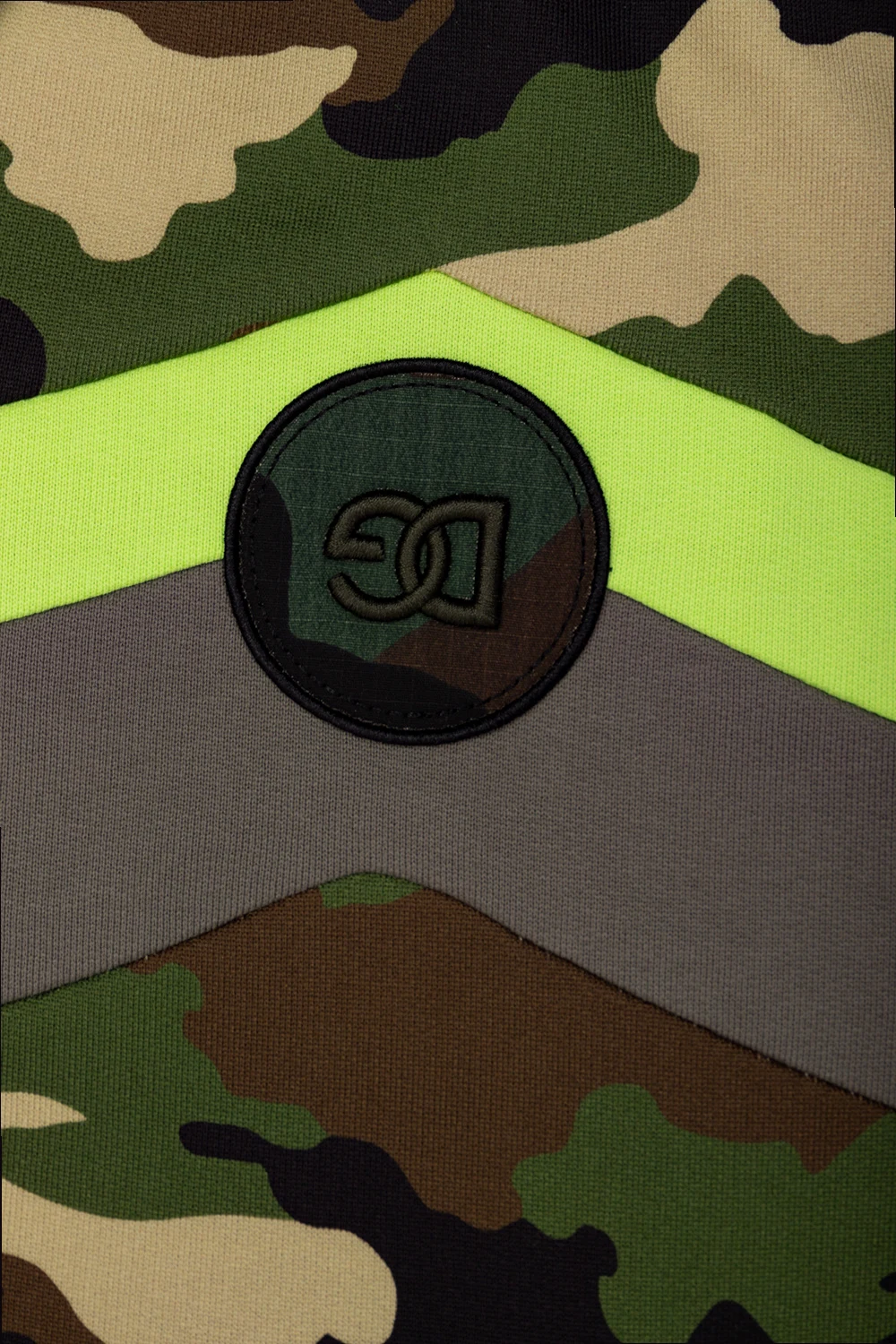 Green, black and brown crewneck sweatshirt from Dolce & Gabbana Kids. Crafted from cotton jersey, this style showcases an all-over camo motif, a logo patch and ribbed edges.