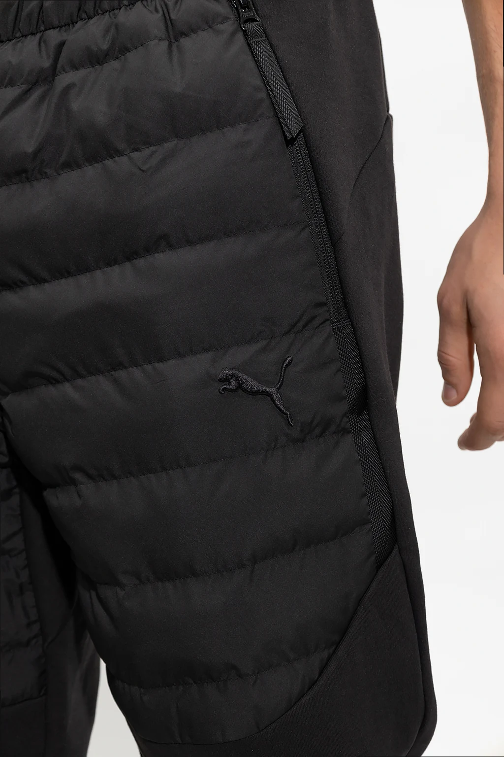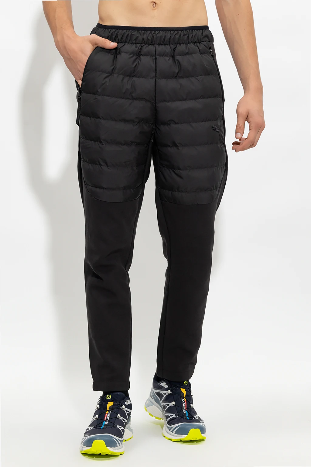 Black trousers from Puma, the ‘Select’ collection. Featuring recycled Primaloft® Thermoplume® insulation, this pair is complete with a drawstring waistband, two zip pockets, long legs and quilted front panelling with an embroidered logo.