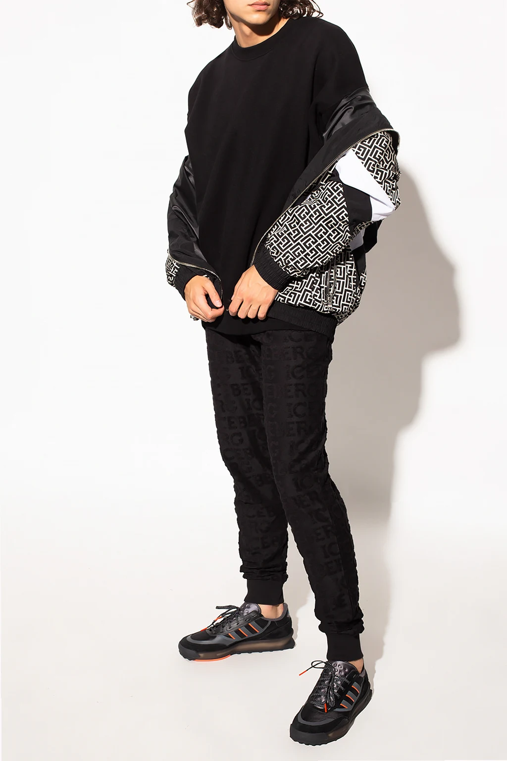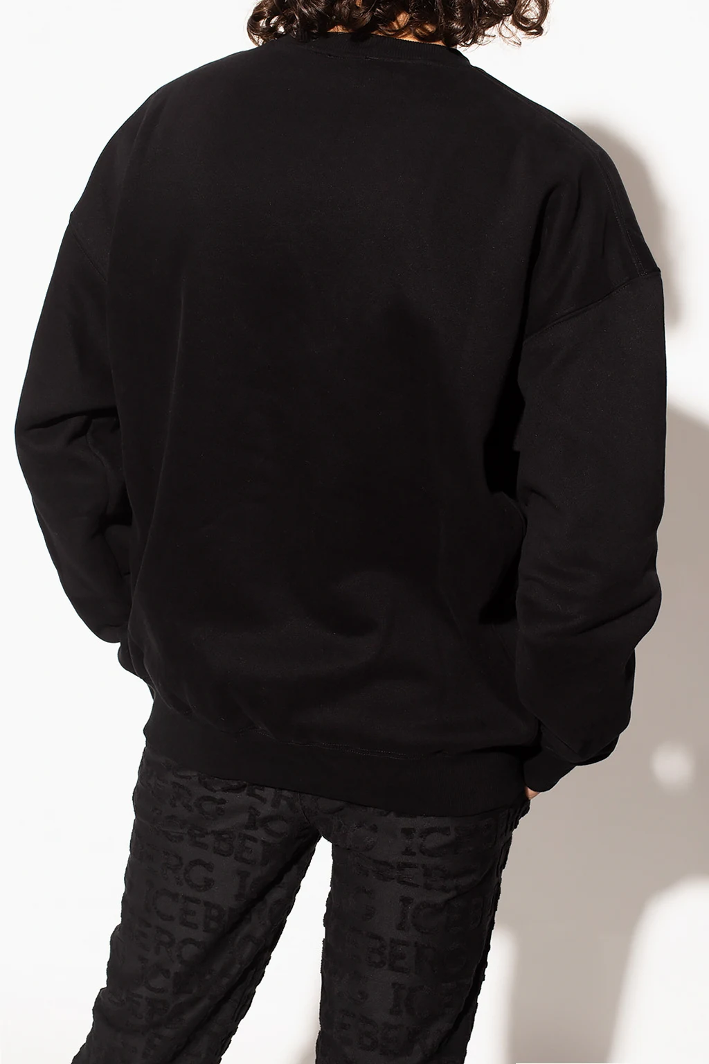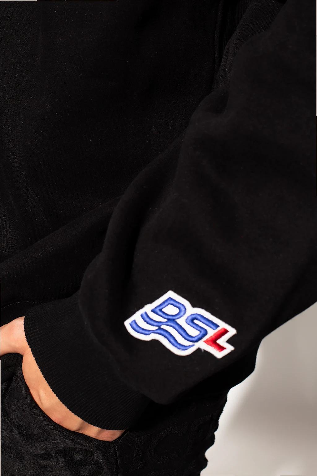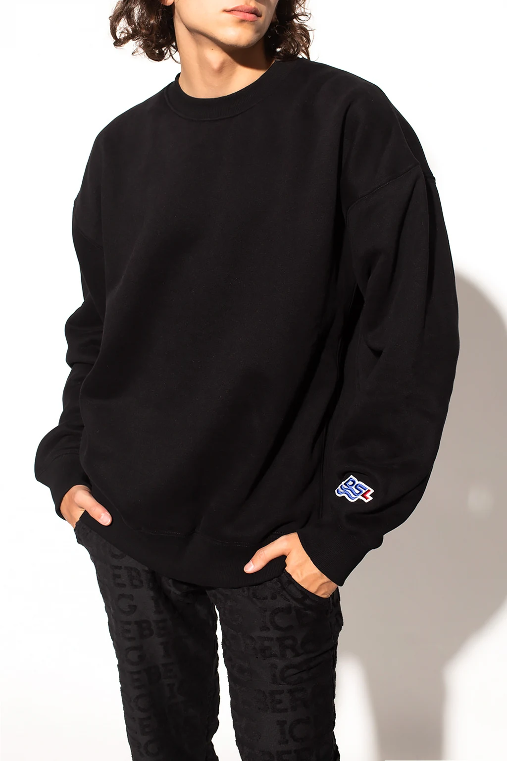 Black padded sweatshirt from Diesel. Crafted from cotton jersey, this style showcases a blue, white and red logo patch on the sleeve and ribbed trims on the round neck, bottom hem and cuffs.