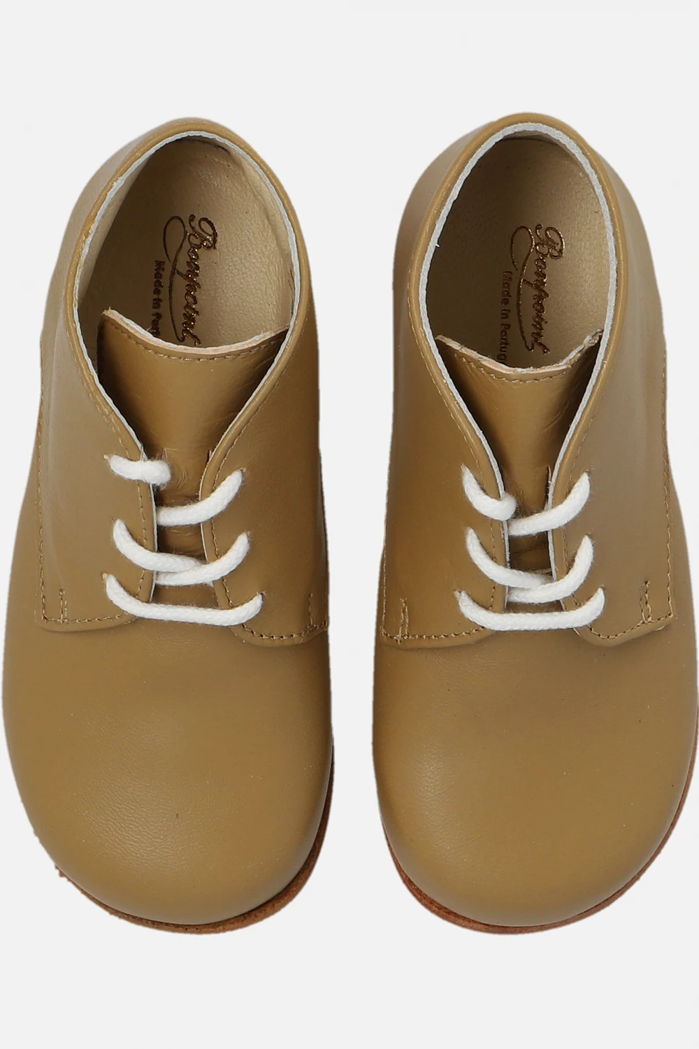 Brown ‘Joyau’ ankle boots from Bonpoint. Crafted from leather, this lace-up model sits on a beige and brown rubber sole and features a round toe.