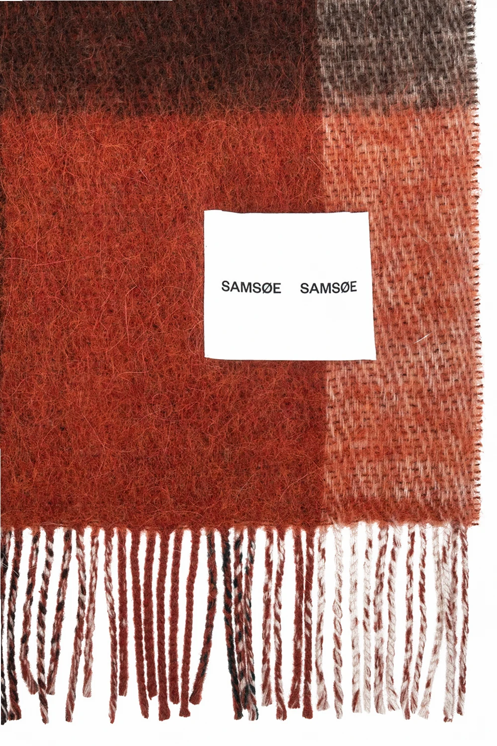 Multicoloured scarf from Samsoe Samsoe. Crafted from a wool and alpaca wool blend, this item showcases a check pattern and fringed edges.