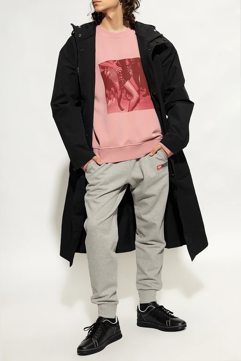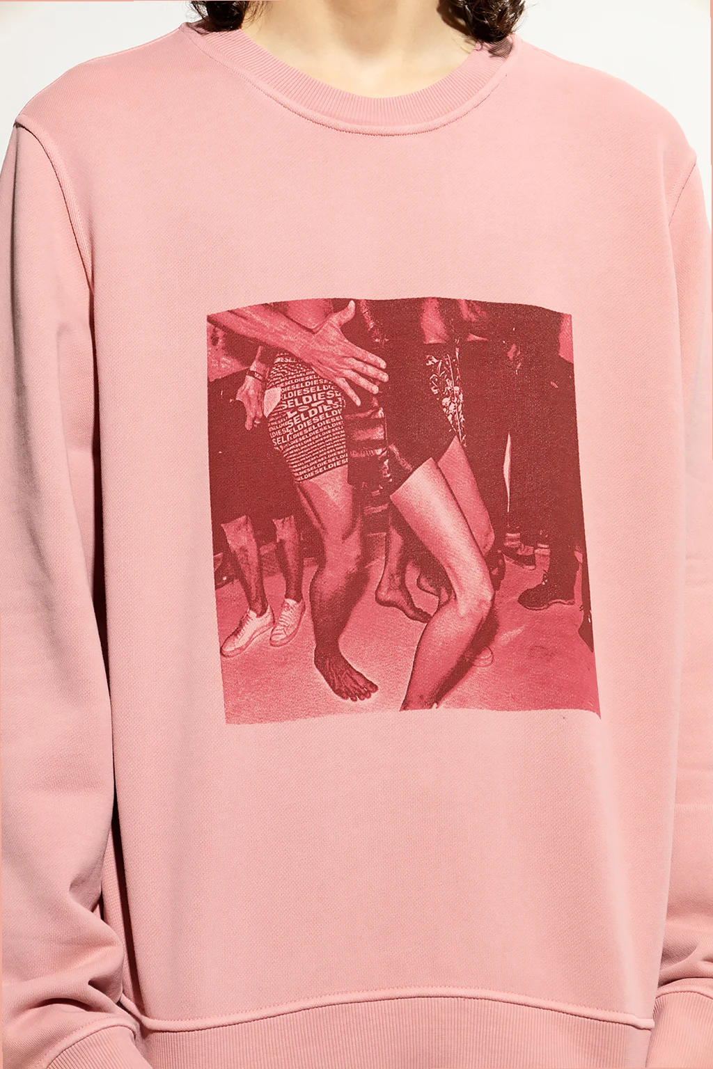 Light pink ‘S-GINN-E8’ sweatshirt from Diesel. Crafted from cotton, this garment features a printed logo pattern and ribbed edges.