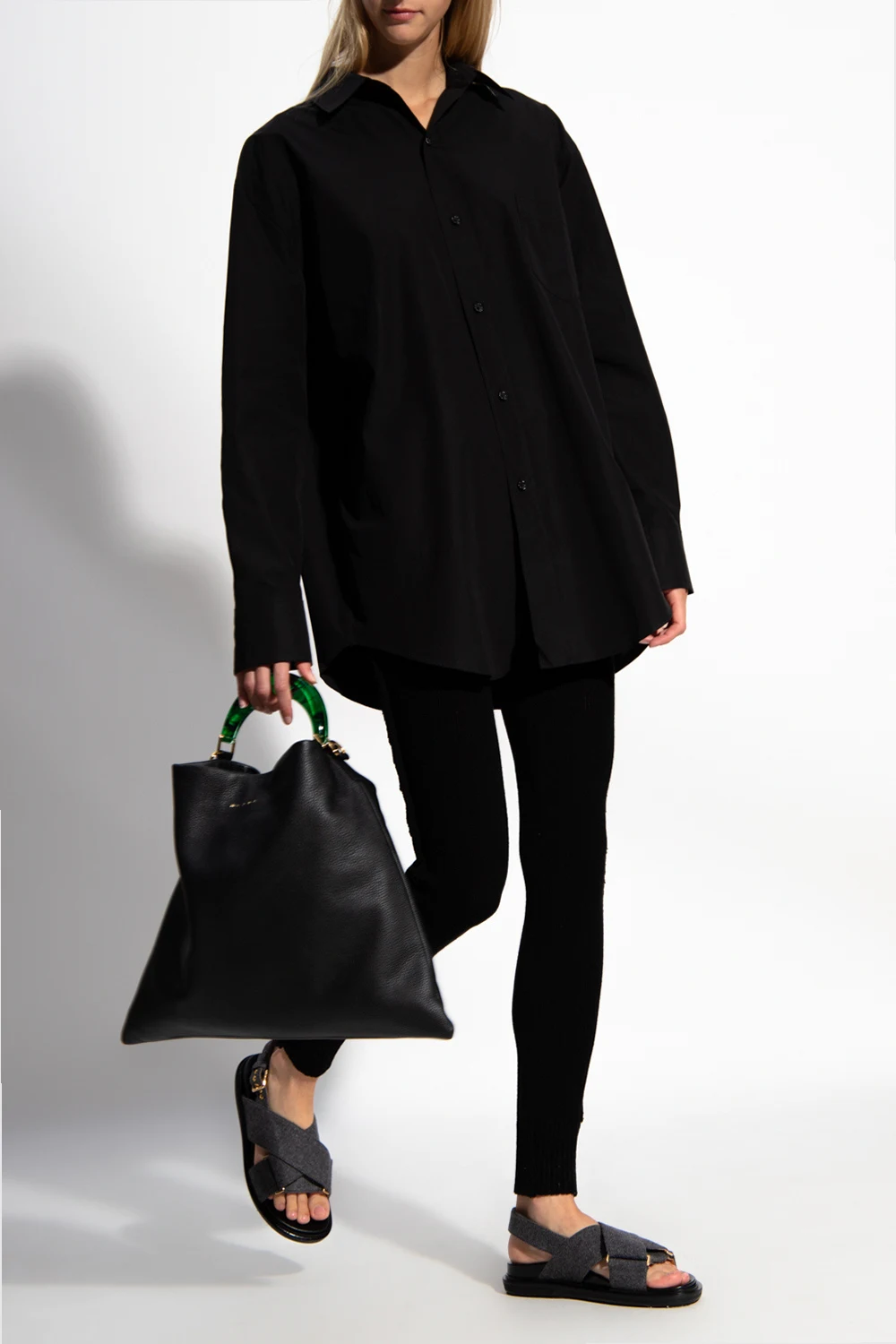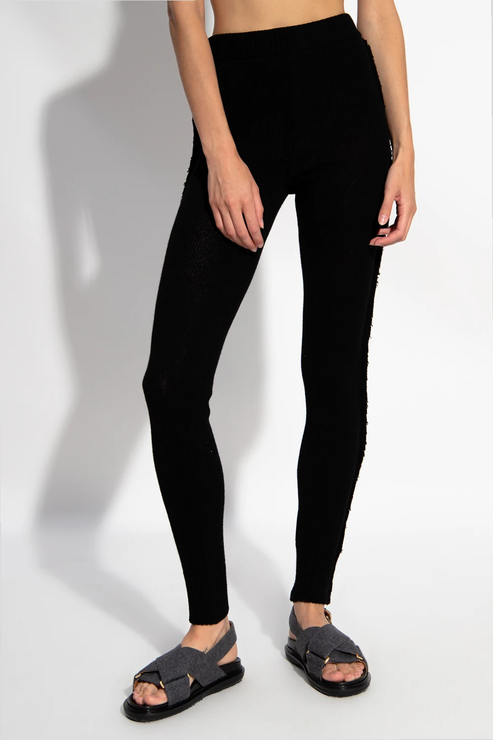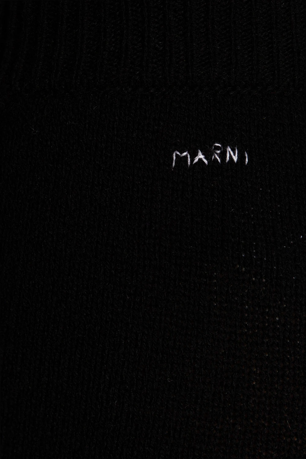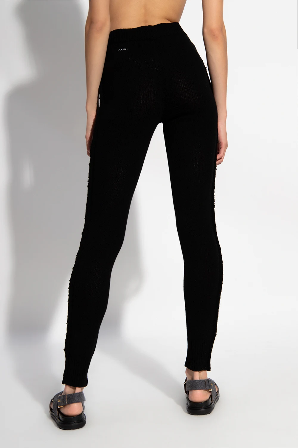Black trousers from Marni. Made of cashmere, this design features an elastic waistband, white logo embroidered at the back and tapered legs with ribbed cuffs.