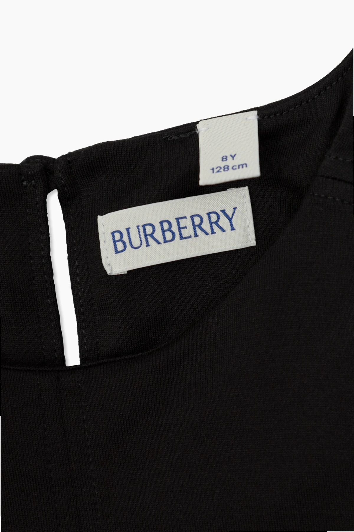 Der Charme dieser Kreation wird durch kurze Ärmel und einen ausgestellten Saum unterstrichen, die ihm Leichtigkeit und mädchenhaften Charme verleihen. Auf der Vorderseite befindet sich ein Aufnäher mit dem charakteristischen Karomuster und dem raffinierten Markenlogo "Burberry", was ihm einen unverwechselbaren Stil verleiht.