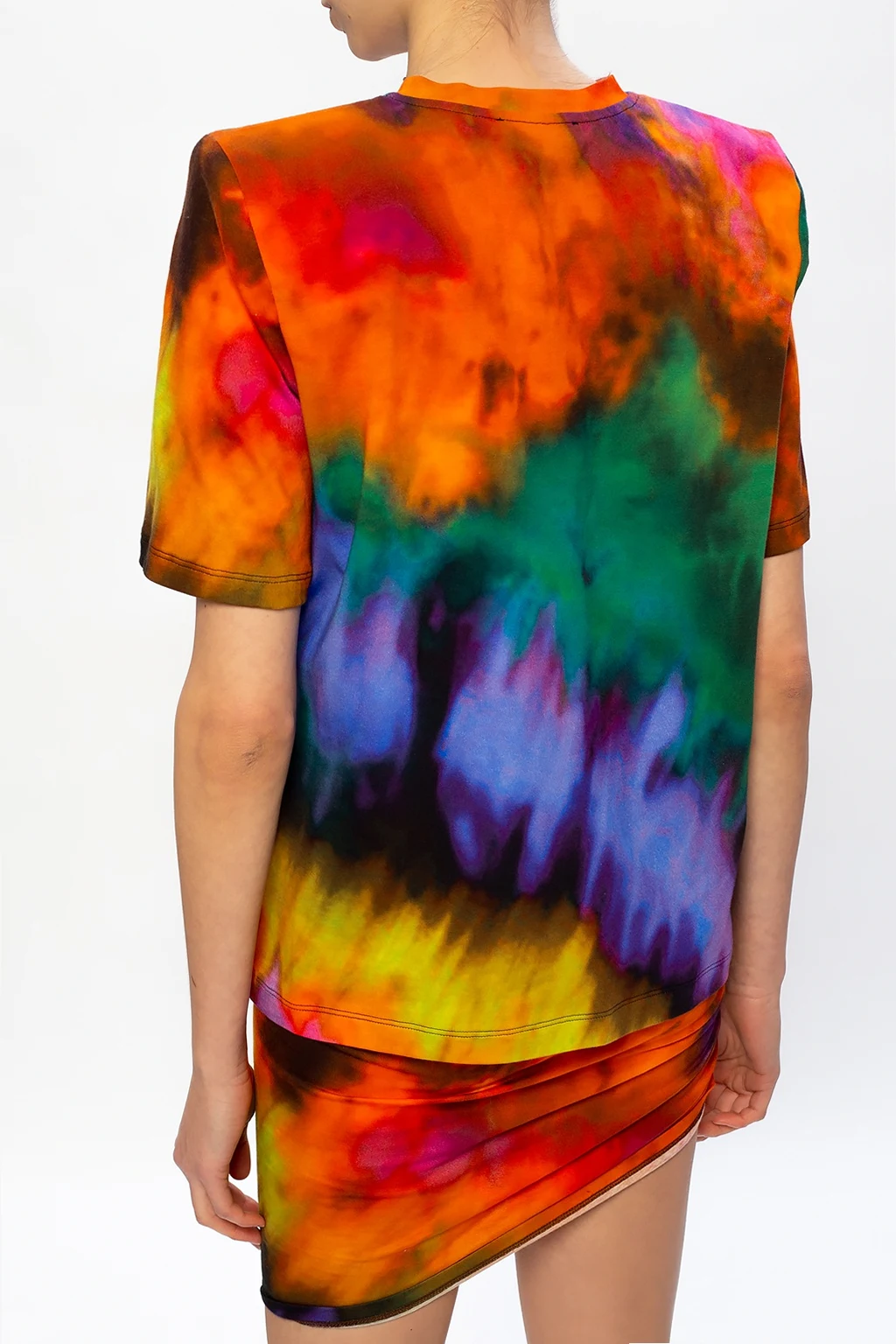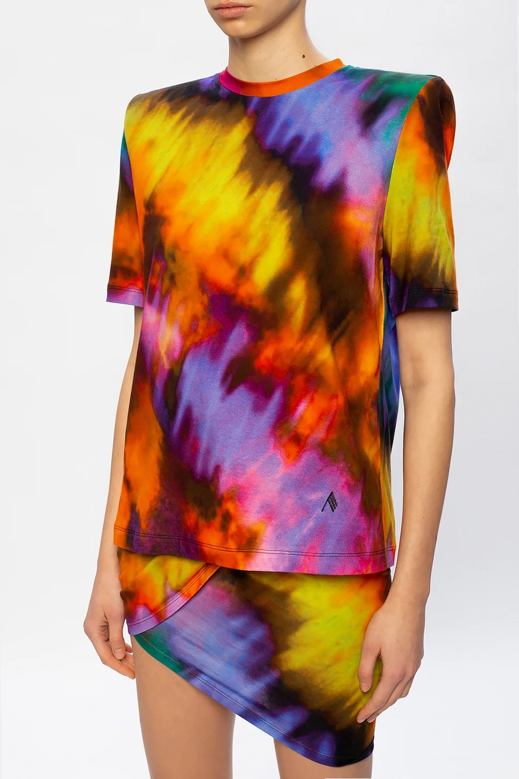 Multicolored T-shirt from The Attico. Defined by its padded shoulders, this cotton-crafted garment also features a ribbed round neck and black logo embroidery.