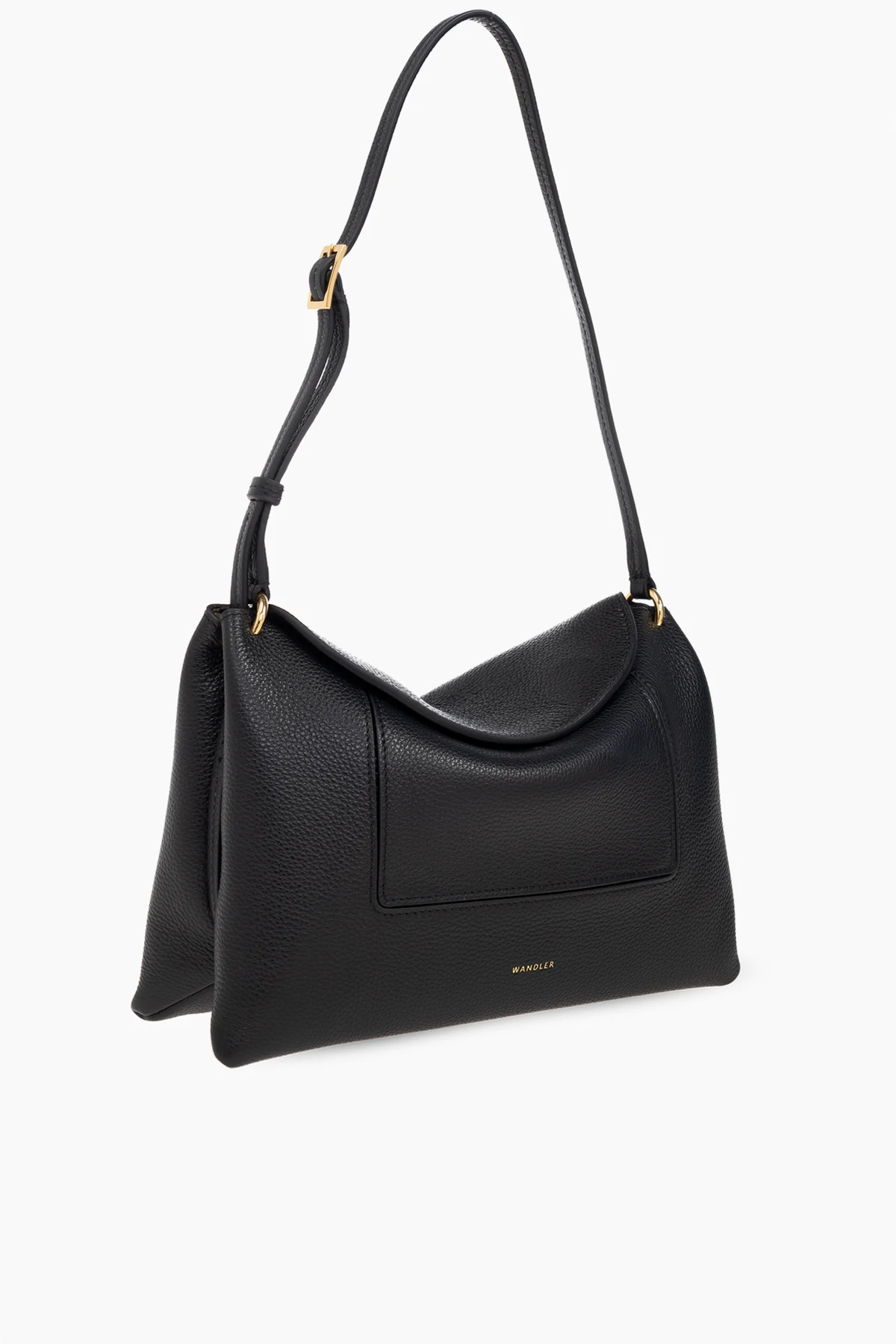 Wir präsentieren die Schultertasche "Penelope" aus der renommierten Kollektion der Marke Wandler . Hergestellt aus hochwertigem, genarbtem Kalbsleder, vereint diese schwarze Tasche Eleganz mit Funktionalität.
