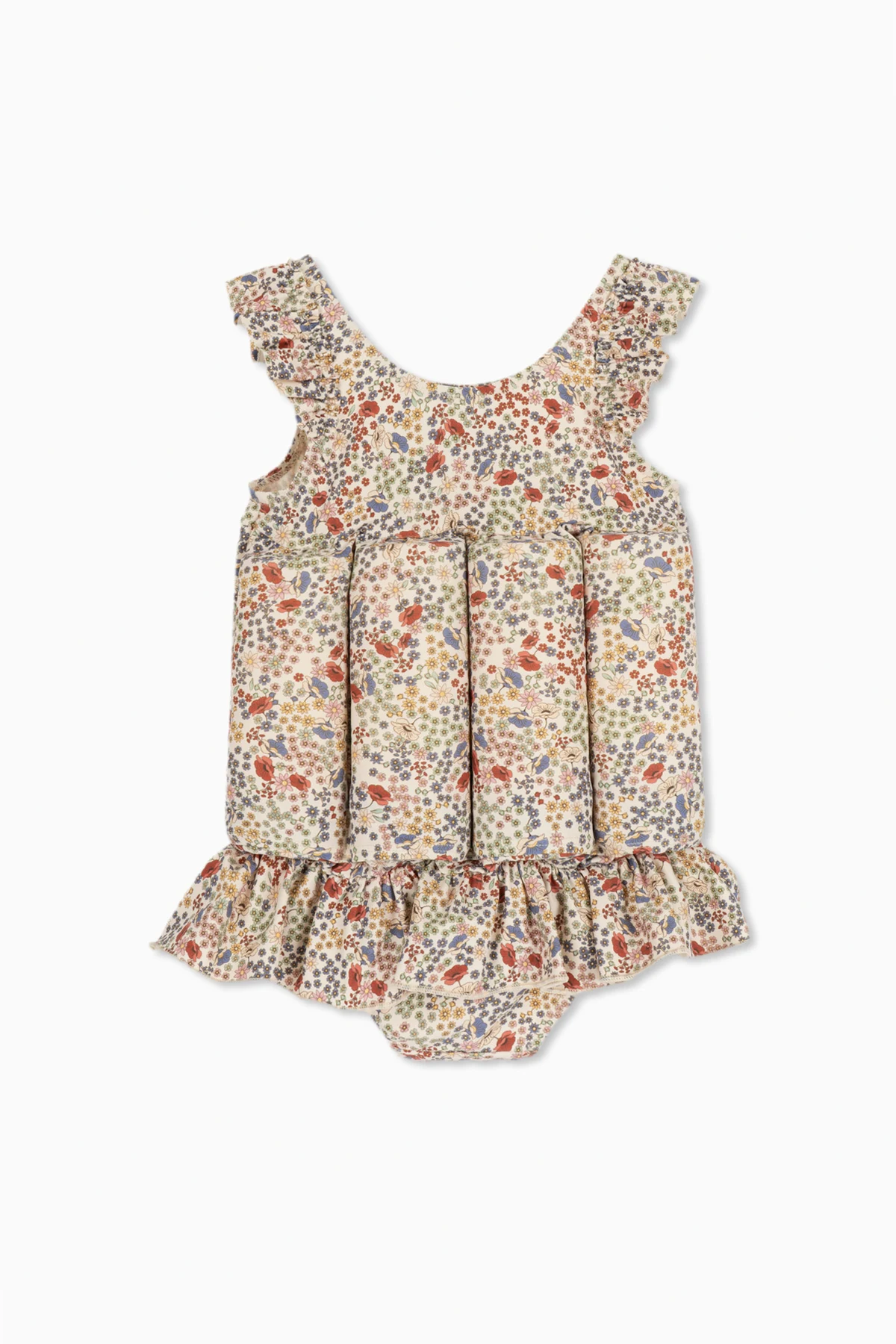 Einzigartige Merkmale des Anzugs sind Rüschen , die mädchenhaften Charme hinzufügen, und herausnehmbare Auftriebsstäbe , die durch die Aufrechterhaltung des Gleichgewichts im Wasser das Schwimmenlernen unterstützen. In der Größe 18M finden wir praktische Knopfverschlüsse an den Beinöffnungen , die das An- und Ausziehen des Anzugs erleichtern.