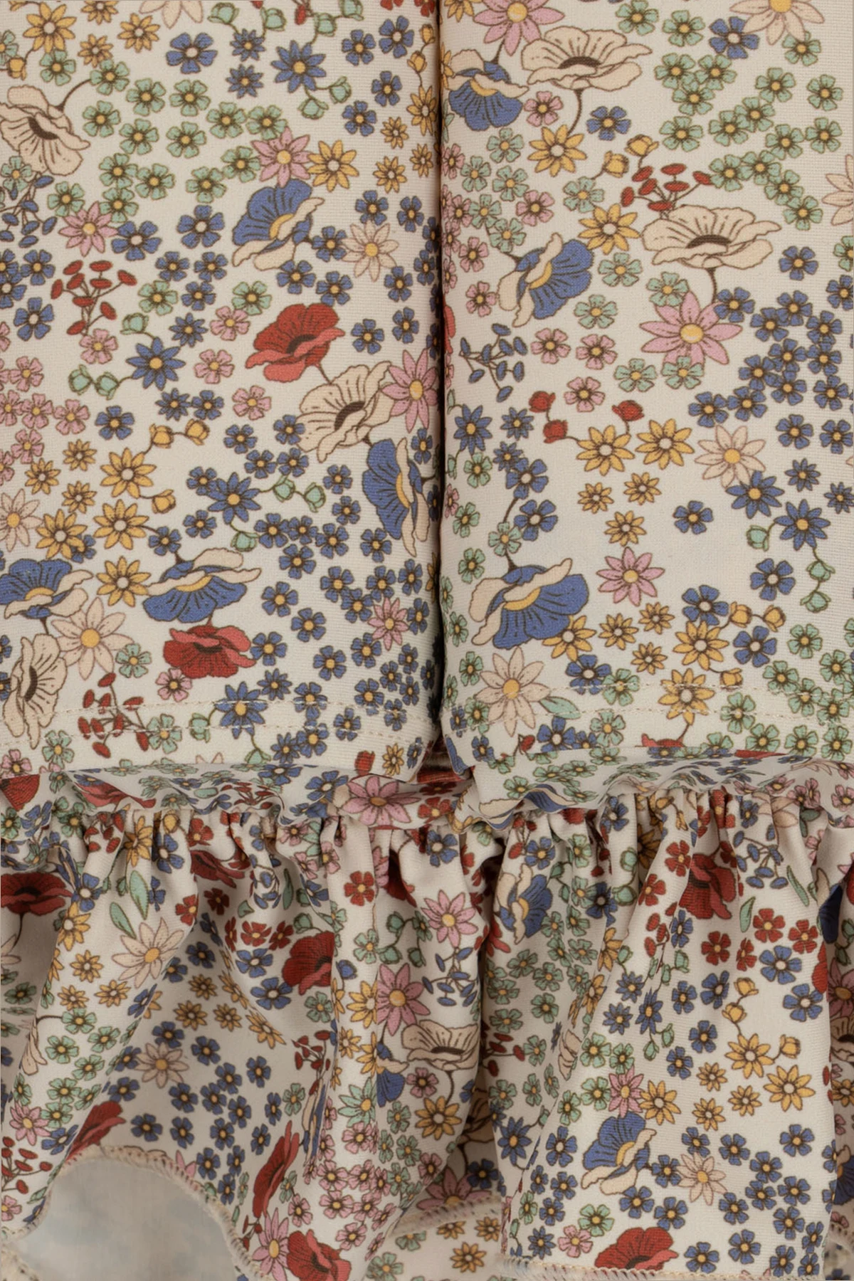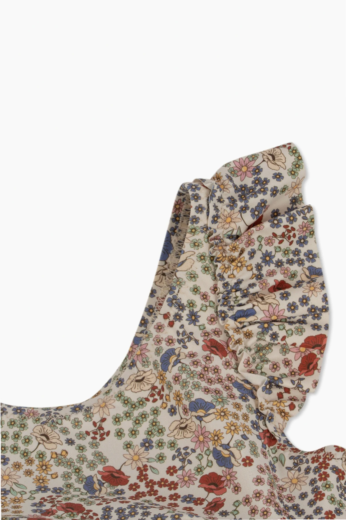 Ein raffiniertes, buntes Blumenmuster , das ein Farbspektrum von Rot über Blau bis Gelb entfaltet, schafft eine kohärente und bezaubernde Komposition, die sich von monochromatischen Outfits abhebt. Der Stoff, der aus 80% recyceltem Polyester und 20% Elastan besteht, garantiert Flexibilität und eine körpernahe Passform, was für den Komfort und die Sicherheit des jungen Schwimmers entscheidend ist.