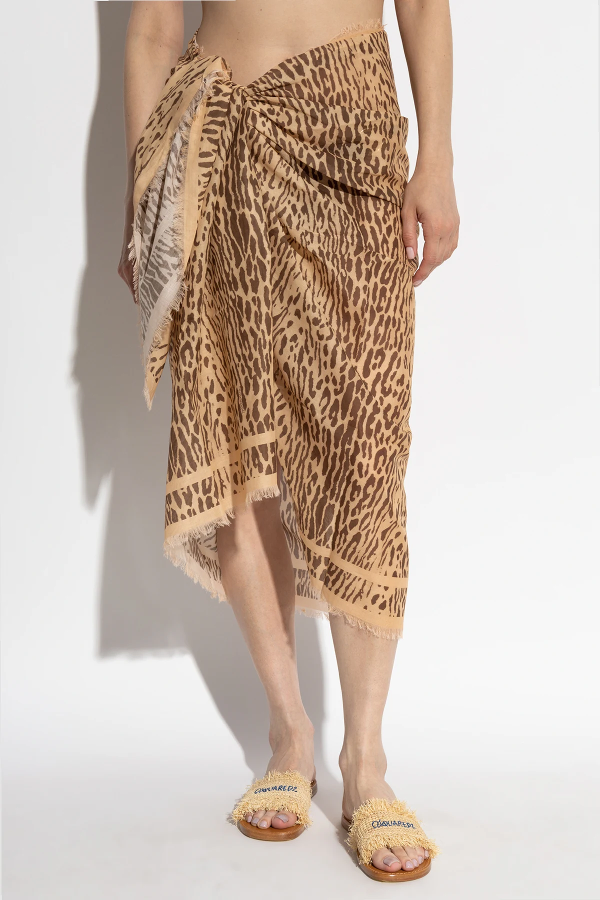 Das faszinierende Leopardenfell-Muster weckt die Erinnerung an sommerliche Reisen und raffinierten Luxus, der die Handschrift von Zimmermann auszeichnet. Fein ausgefranste Kanten sowie ein kontrastierender Bindegürtel im hellen Dessin-Variante vervollständigen das Gesamtbild und verleihen dem Stück einen einzigartigen Charme.