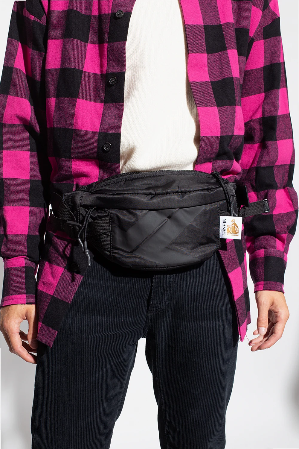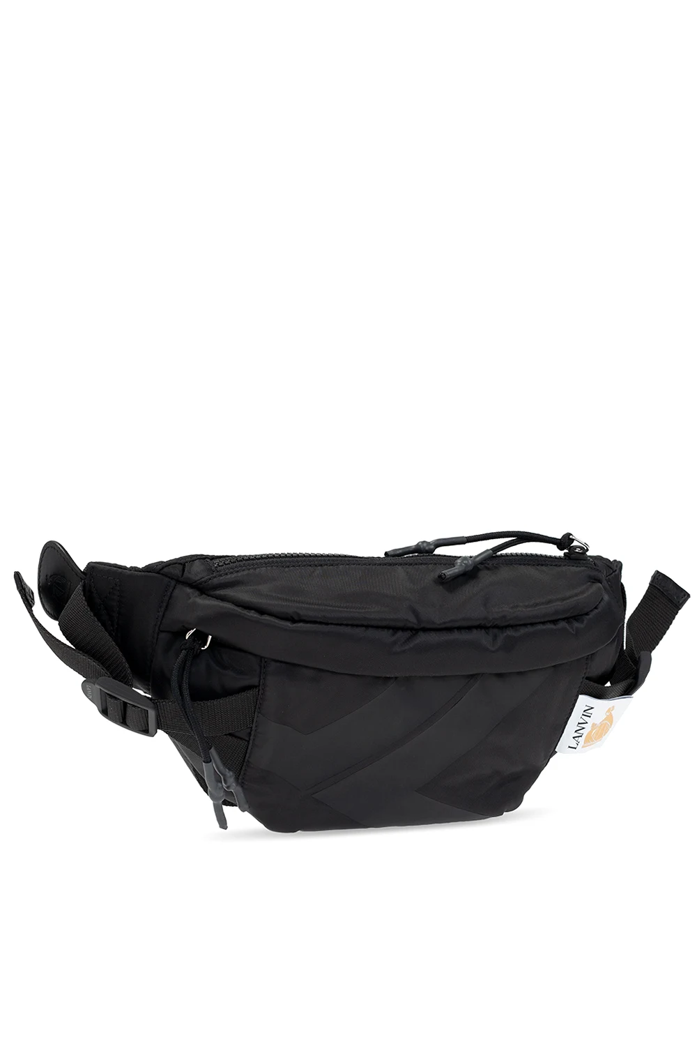 Black ‘Bumpr’ belt bag from Lanvin. Emblazoned with a branded patch, this design features a zip fastening, a zip pocket on the back, an adjustable strap with a buckle closure and one internal compartment with a slip pocket.