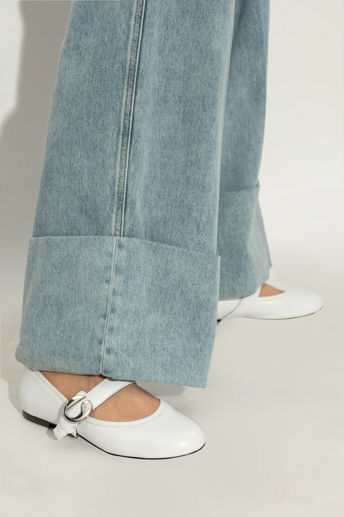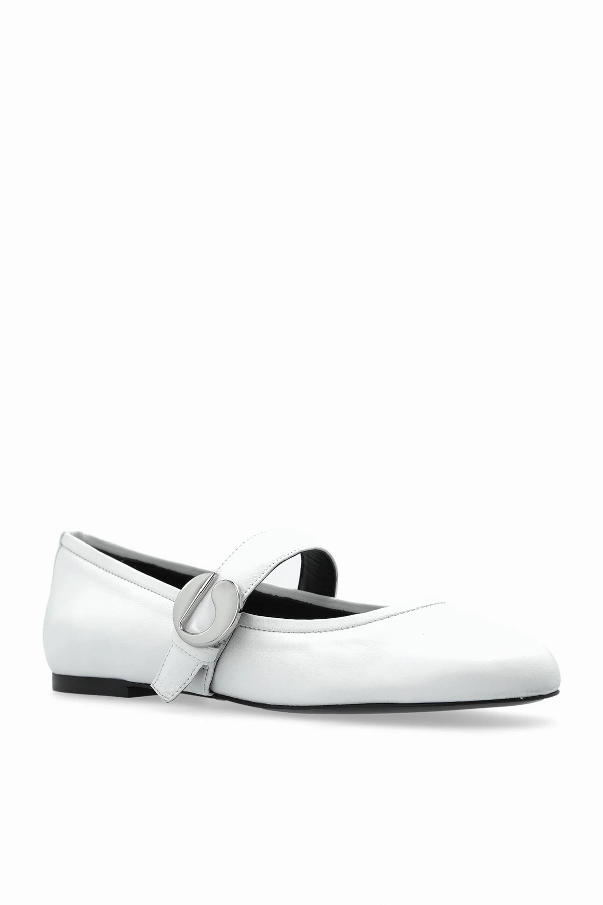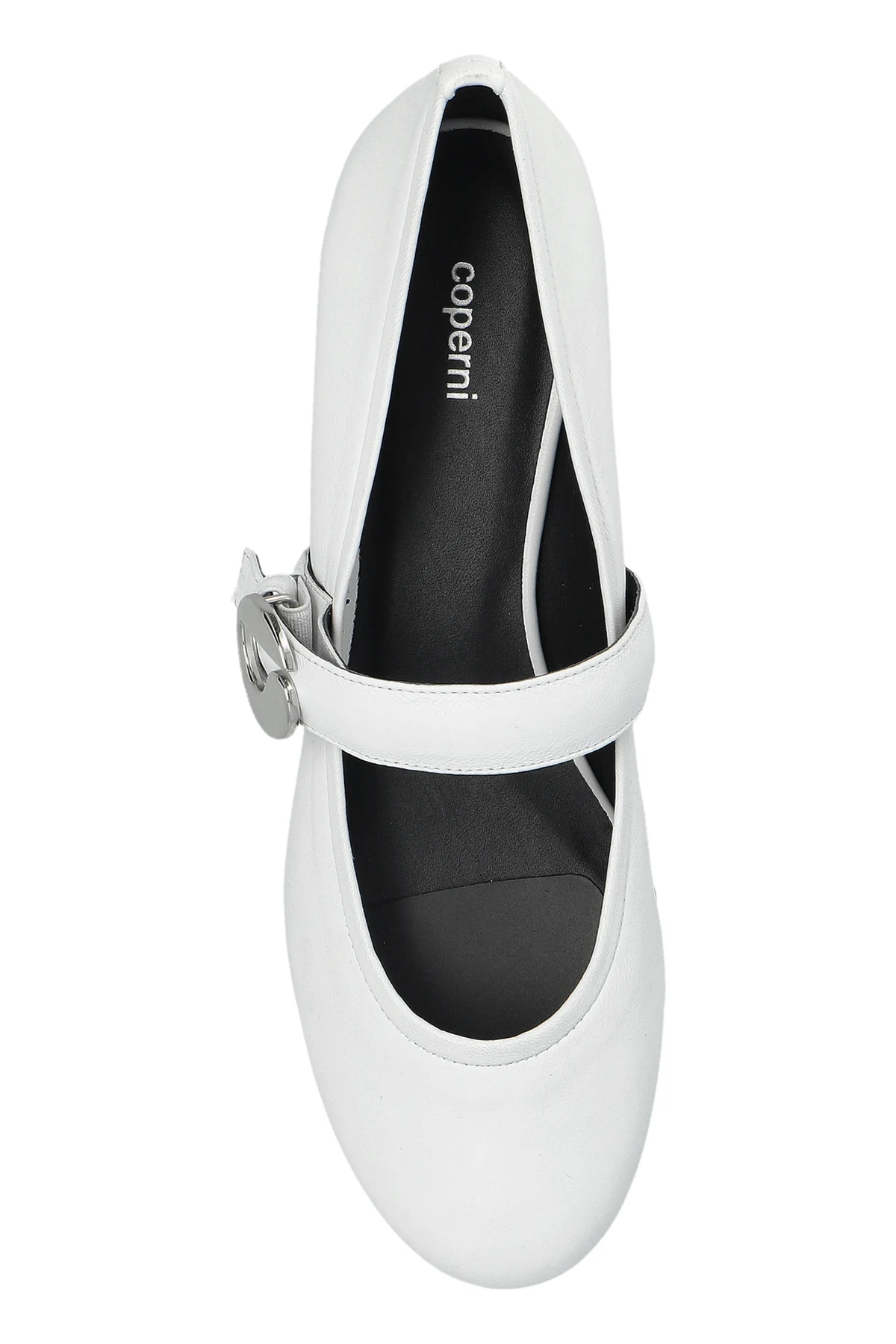 Präsentieren Sie die einzigartigen Lederschuhe aus der exklusiven Kollektion der Marke Coperni . Diese eleganten weißen BALLET FLATS kombinieren klassisches Design mit modernen Akzenten und zeichnen sich durch eine abgerundete Spitze sowie einen dezenten Riemen mit großer, runder Schnalle aus.