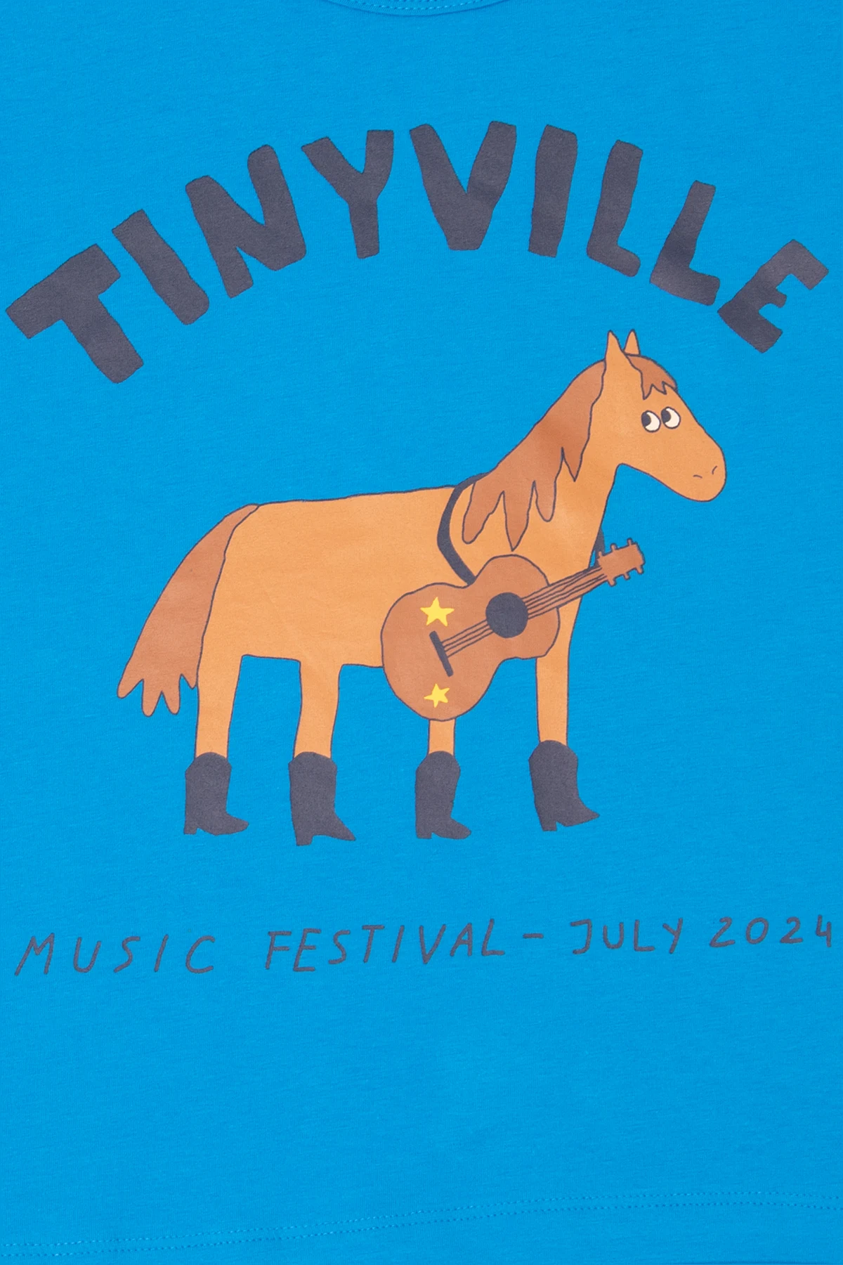 Wir präsentieren das außergewöhnliche T-Shirt mit Pferdemotiv von der renommierten Marke Tiny Cottons , das die Quintessenz des raffinierten Stils in Verbindung mit einer Leidenschaft für Musik darstellt. Hergestellt aus der höchsten Qualität organischer Baumwolle , angereichert mit einem Hauch von Elastan , bietet es nicht nur Tragekomfort, sondern auch hervorragende Langlebigkeit. Die blaue Farbe des Shirts, kontrastiert mit dem braun-schwarzen Druck eines Pferdes, das eine Gitarre hält, spiegelt den einzigartigen Charakter des Events "TINYVILLE MUSIC FESTIVAL - JULI 2024" wider.