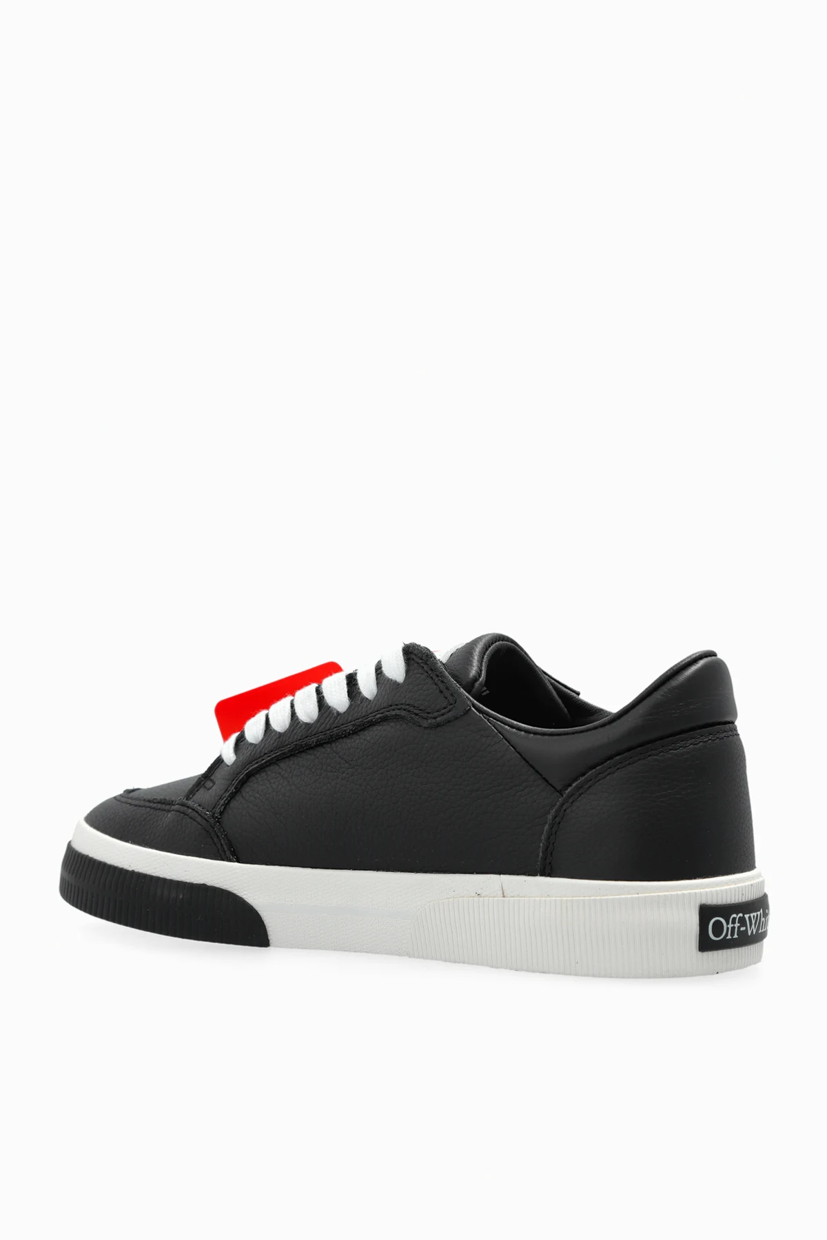 Wir präsentieren SNEAKERS 'New Low Vulcanized' aus der prestigeträchtigen Kollektion der Marke Off-White . Diese schwarzen Schuhe, gefertigt aus hochwertigstem Leder, vereinen sportlichen Stil mit luxuriösem Finish. Die schwarzen Obermaterialien sind mit weißen Pfeilen, dem Logo der Marke, und roten Etiketten, die an den weißen, kontrastierenden Schnürsenkeln befestigt sind, verziert.