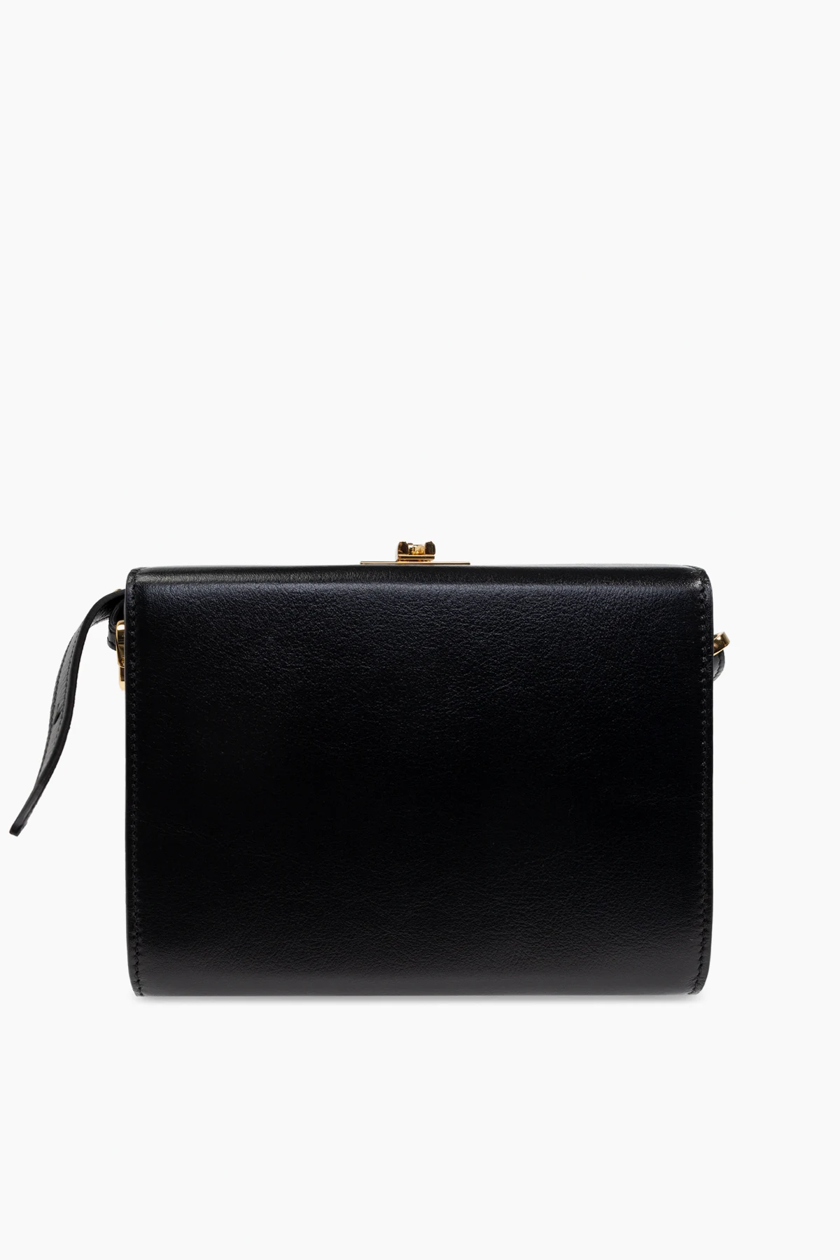 Hergestellt aus hochwertigem, glattem Kalbsleder, vereint die Tasche Langlebigkeit und Eleganz, verziert mit einem dezenten goldenen Logo und stilvollen goldenen Elementen. Der verstellbare Riemen ermöglicht das Tragen sowohl über der Schulter als auch als Crossbody.