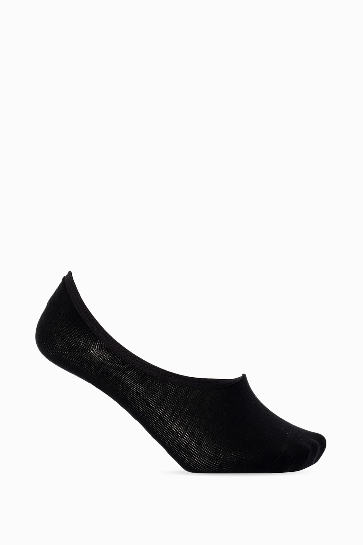 Zweierpack schwarze kurze Socken, Modell 'SKM-HIDEPAT' Diesel. Mit gesticktem Logo verziert. Mit elastischem Gummiband und Silikonstreifen abgeschlossen.
