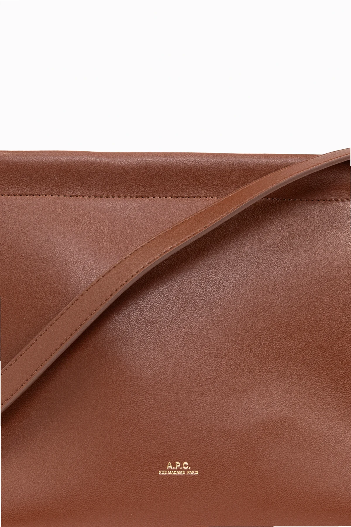 Das subtile Design-Logo „A.P.C.” zusammen mit der Aufschrift „Rue Madame Paris” ziert dezent die Vorderseite der Tasche und verleiht ihr Prestige. Der verstellbare Schultergurt bietet Tragekomfort und die Möglichkeit, die Länge nach eigenen Bedürfnissen anzupassen. Das Innenleben, ausgekleidet mit einem harmonisch abgestimmten Futter, verfügt über einen Magnetverschluss und goldfarbene Metallelemente, die der Tasche einen luxuriösen Charakter verleihen. Das dominierende Braun verleiht ihr Universalität, passend zu verschiedenartigen Stylings.