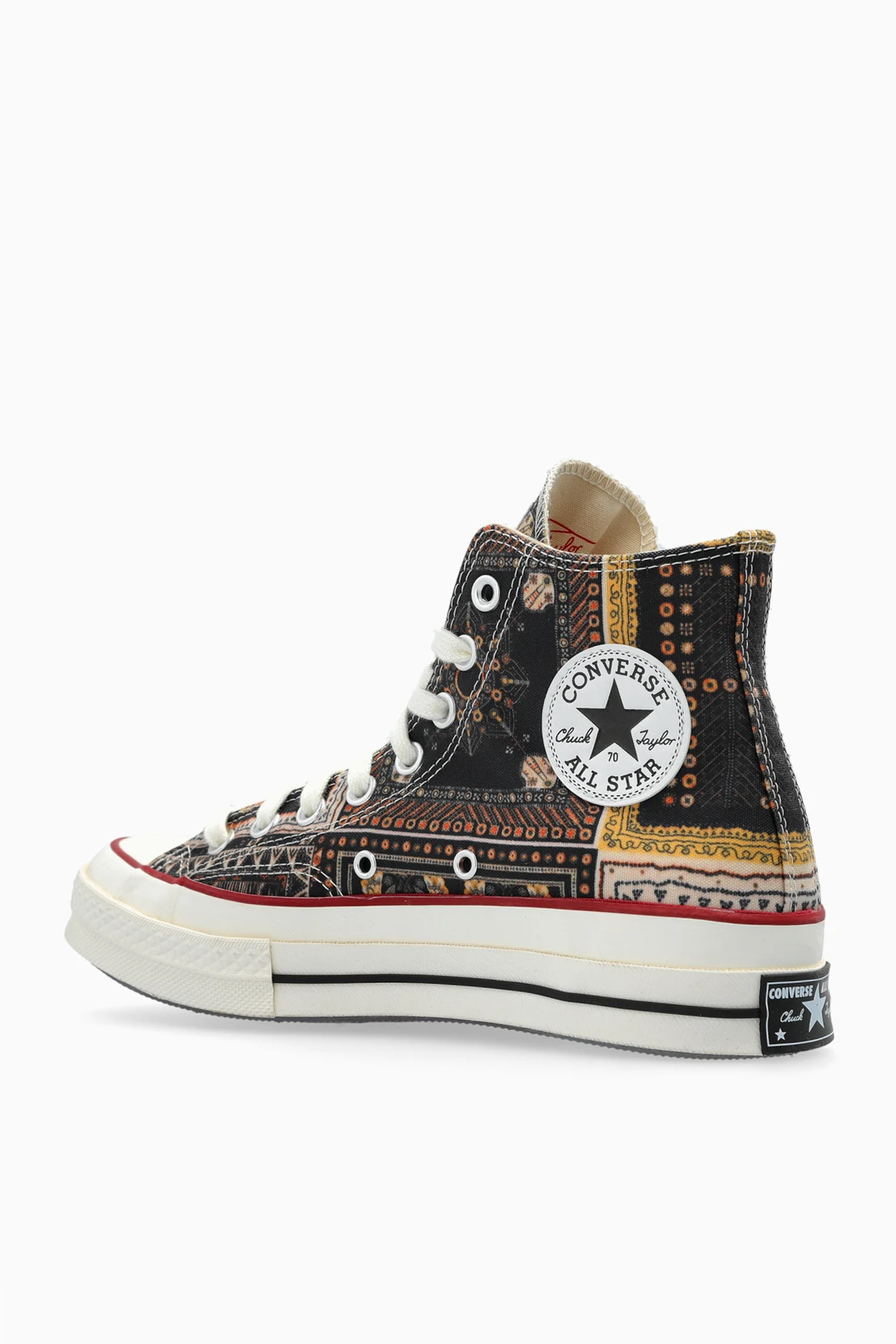 Entdecken Sie die außergewöhnlichen Converse x Isabel Marant – eine beeindruckende Verschmelzung der klassischen Silhouette amerikanischer Sneaker mit dem künstlerischen Geist der Haute Couture. Das Obermaterial besteht aus edlem Canvas, verziert mit einem originellen, mehrfarbigen Patchwork-Muster, das von Geometrie und ethnischen Motiven inspiriert ist und dem Schuh einen unverwechselbaren, orientalischen Ausdruck verleiht.