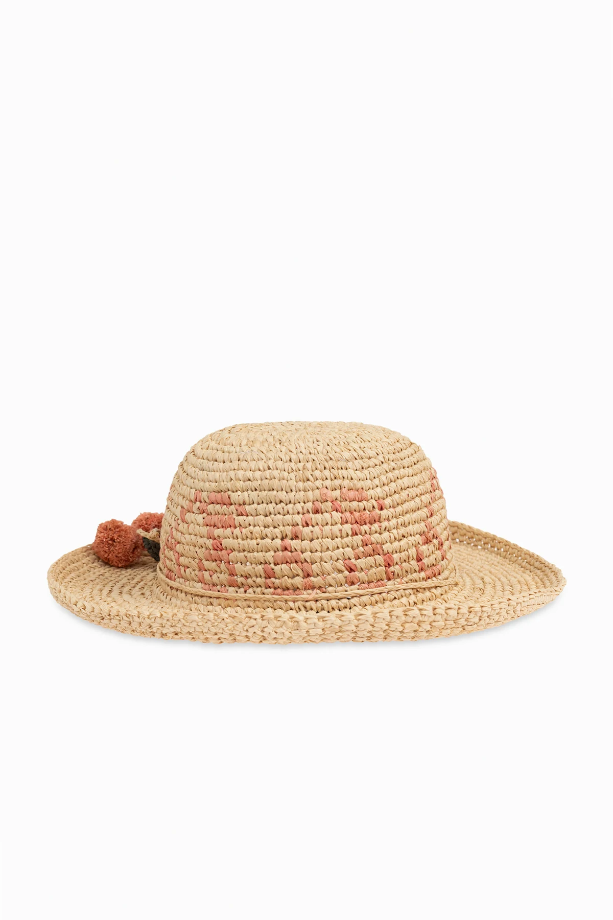 Aus natürlichem Raffia gefertigt, ist der Hut leicht und angenehm zu tragen, was ihn zur idealen Wahl für warme Tage macht. Ein zusätzlicher Vorteil ist das dekorative Element in Form eines Pompons oder einer Blume, das dem Ganzen einen unverwechselbaren Charakter verleiht.