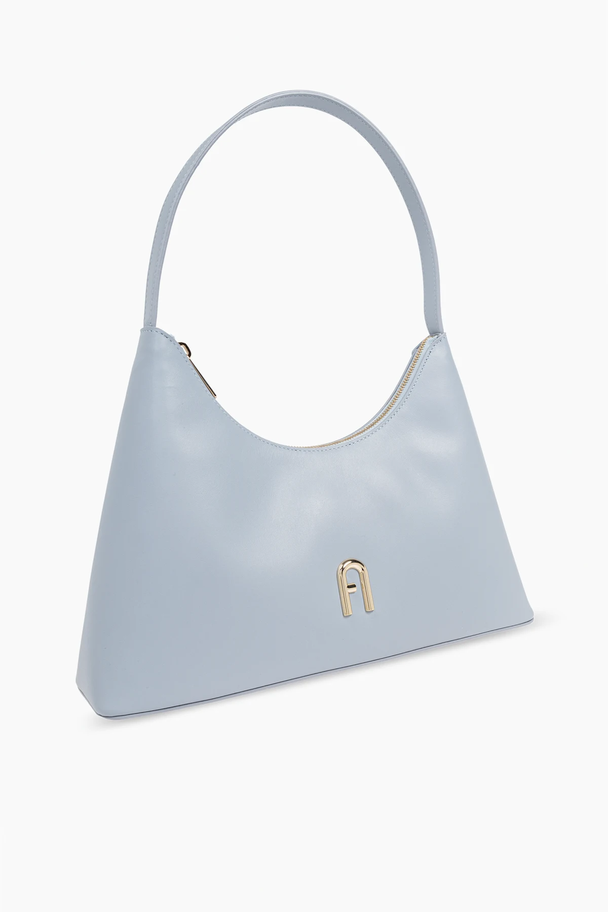 Wir präsentieren die Schultertasche ‘Diamante Small’ aus der Kollektion des renommierten Designers Furla . Diese exklusive Tasche, gefertigt aus echtem Leder, beeindruckt mit ihrer eleganten, dreieckigen Form mit abgerundeter Oberkante, die ihr einen modernen und zugleich klassischen Charakter verleiht. Der subtile hellblaue Farbton unterstreicht ihre raffinierte Eleganz.