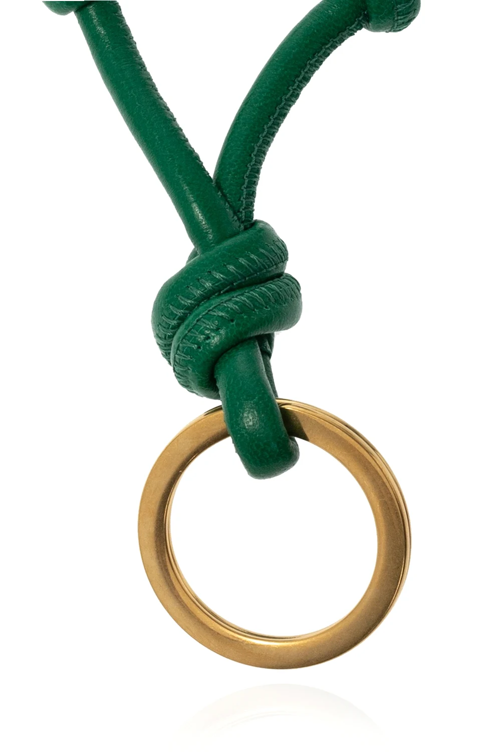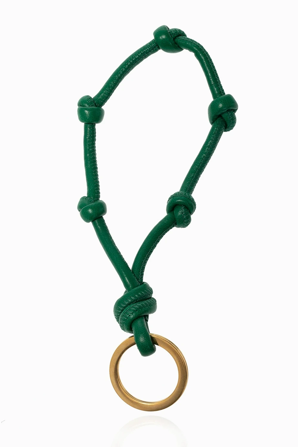 Green keyring from Bottega Veneta. Made of lamb leather, this item features decorative knot details and logo-embossed metal hardware in gold-tone.