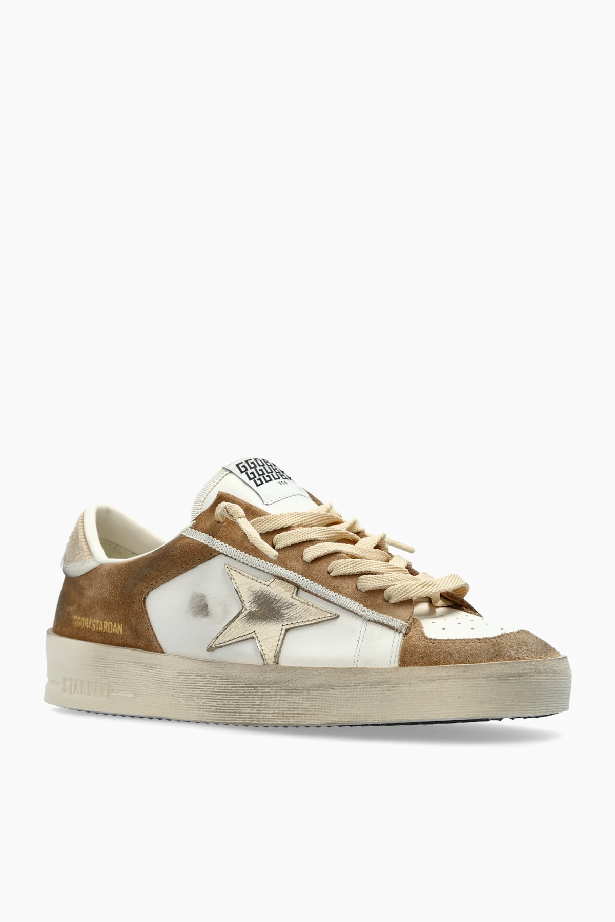 Entdecken Sie das einzigartige Angebot der Marke Golden Goose - die Sneakers Stardan , die klassisches Design harmonisch mit modernen Details vereinen. Die dominierende braune Farbgebung mit weißen und cremefarbenen Akzenten schafft einen eleganten und zugleich modischen Look.