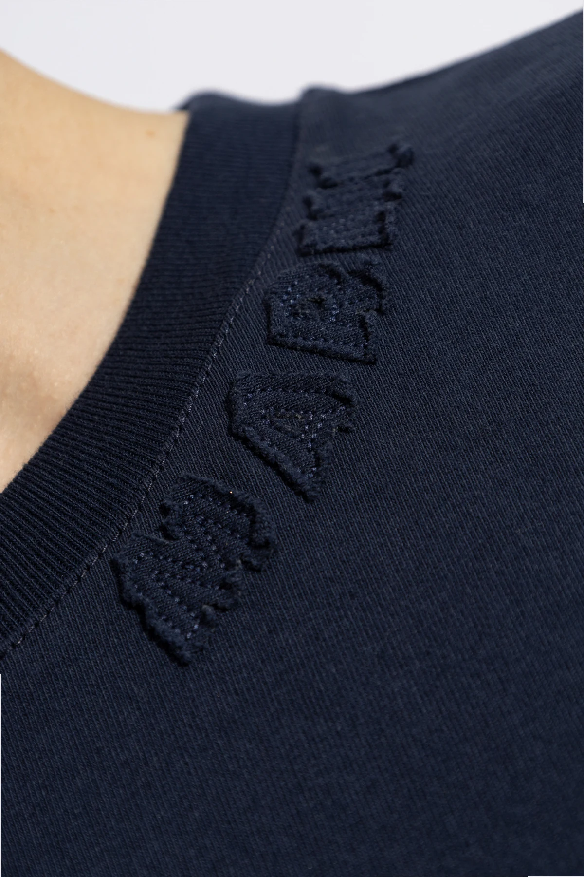 Der glatte Stoff wurde subtil mit einem Ton-in-Ton-Logo der Marke verziert, welches sich am Kragen befindet. Dank der präzisen Verarbeitung heben sich Details wie die erhabenen Buchstaben durch ihre zurückhaltende Eleganz hervor und zeugen von außergewöhnlicher Sorgfalt für Details sowie von der Überlegenheit der Ausführung. Der Schriftzug, entweder gestickt oder geprägt, verleiht einen exklusiven Charakter, bleibt dabei jedoch dezent und unaufdringlich.