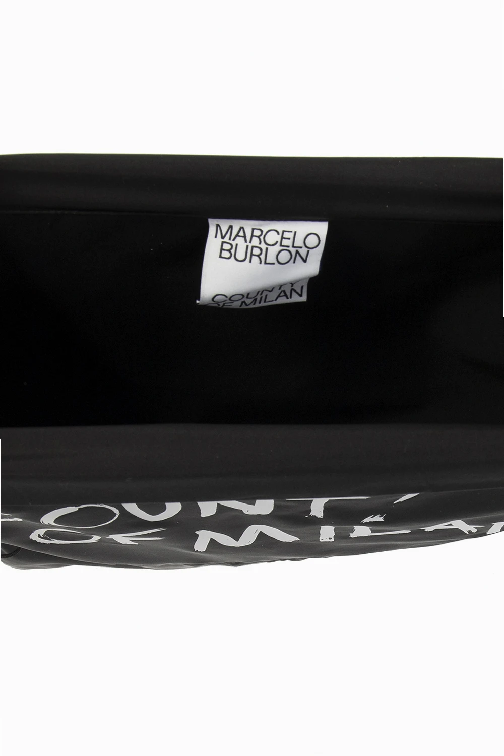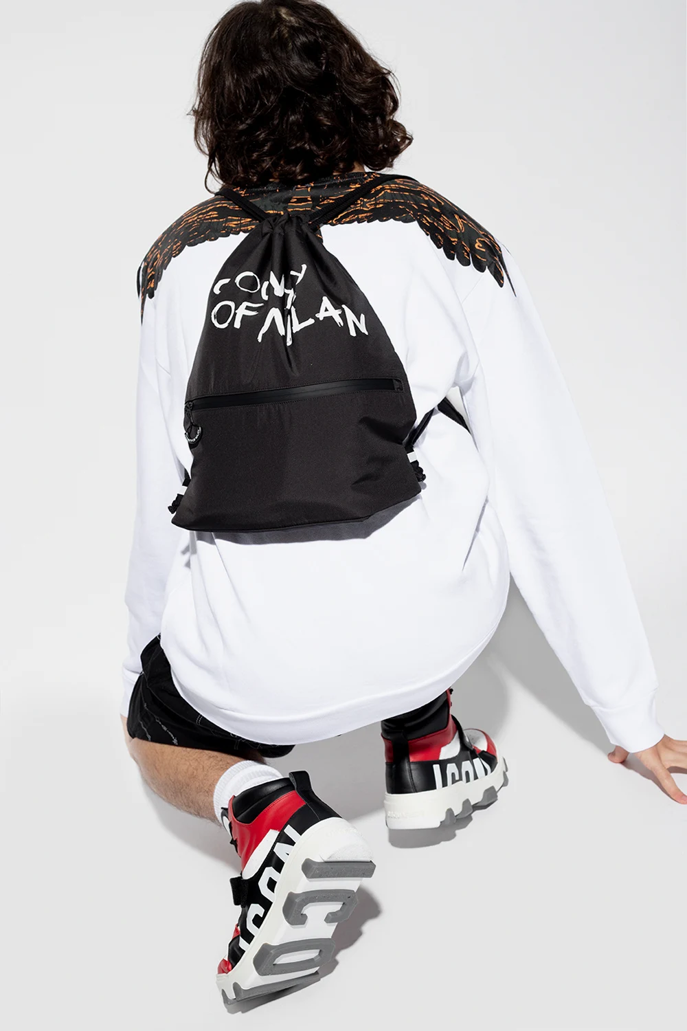 Black backpack from Marcelo Burlon. Fastened with drawstrings, this design features a white print and front zip pocket.