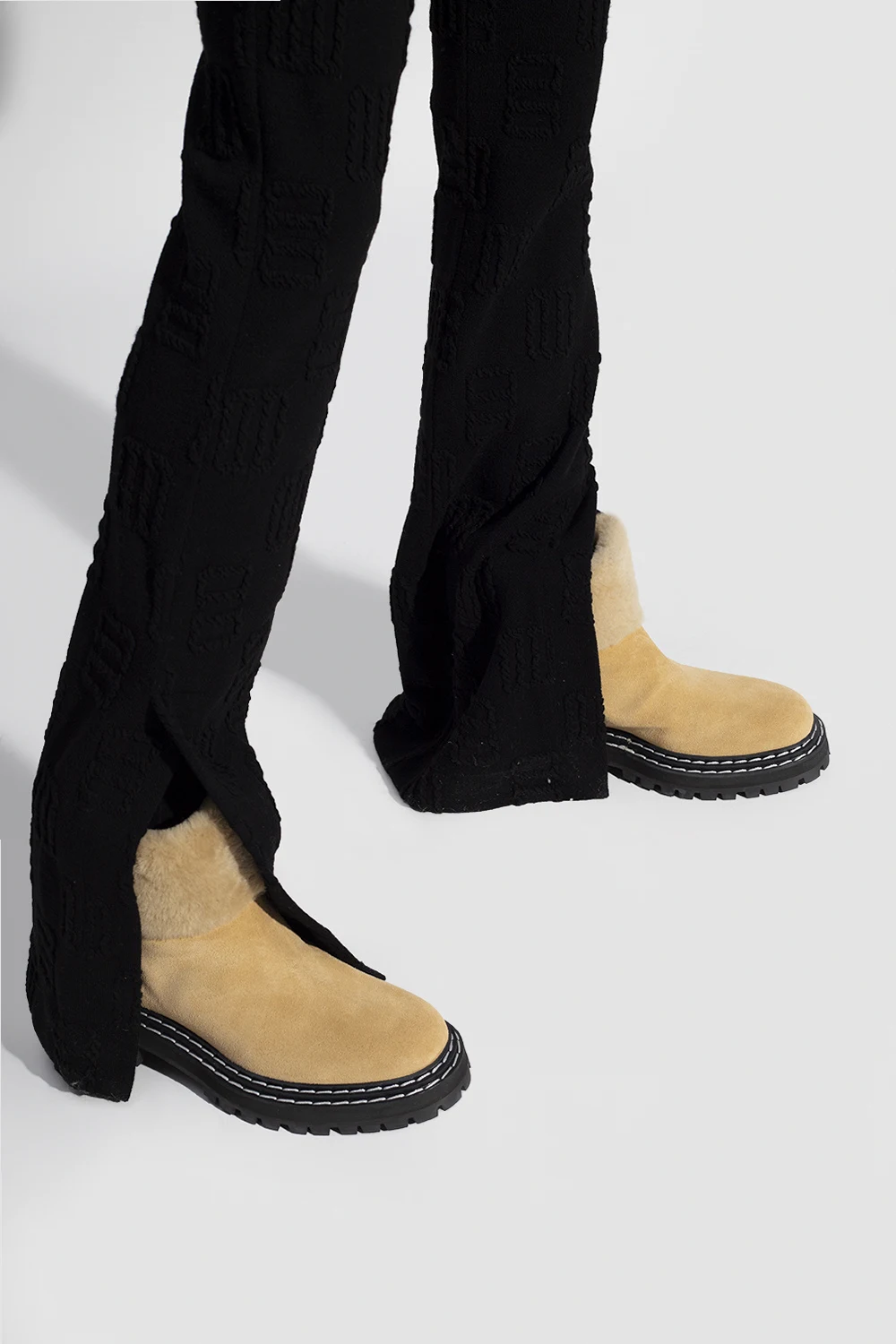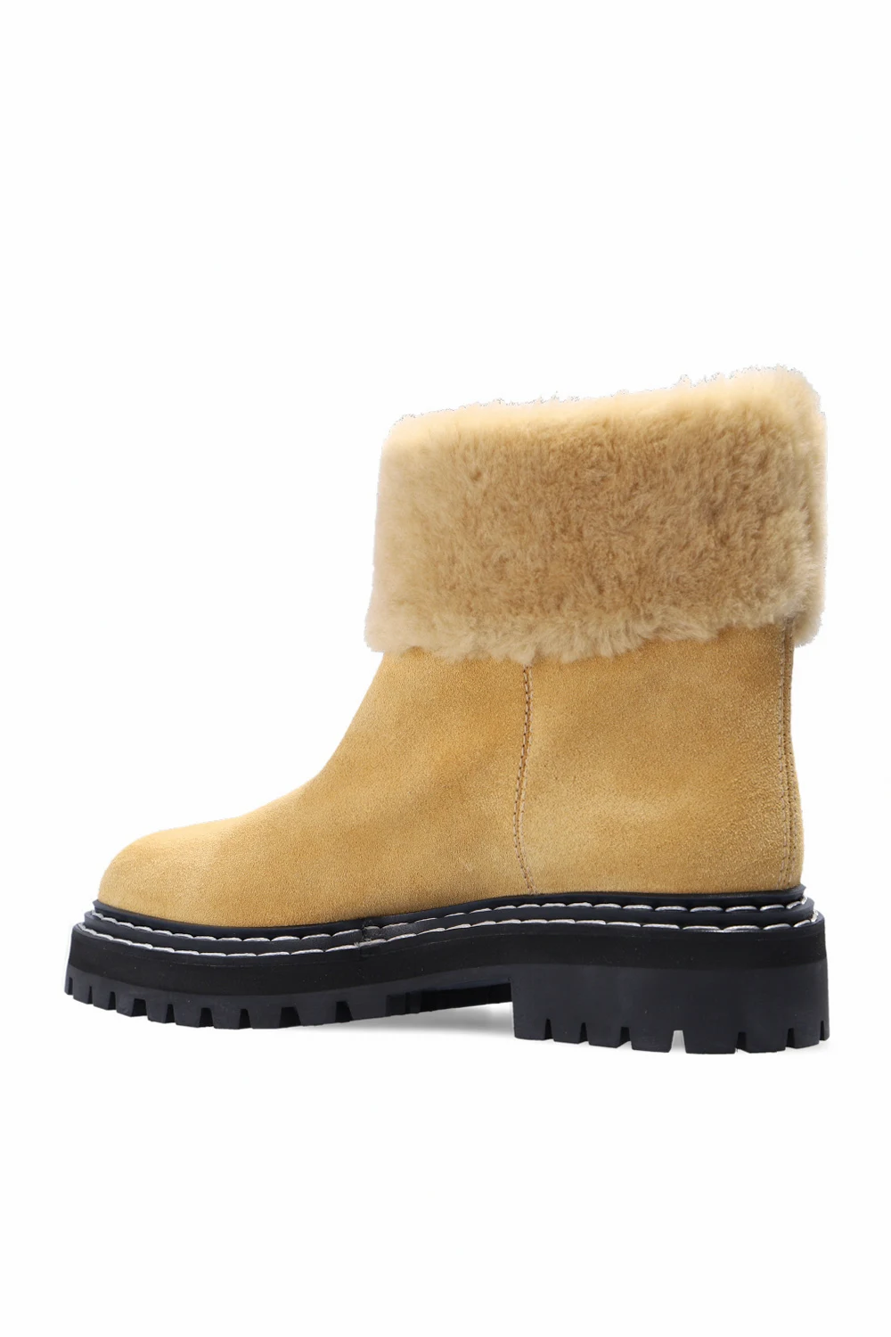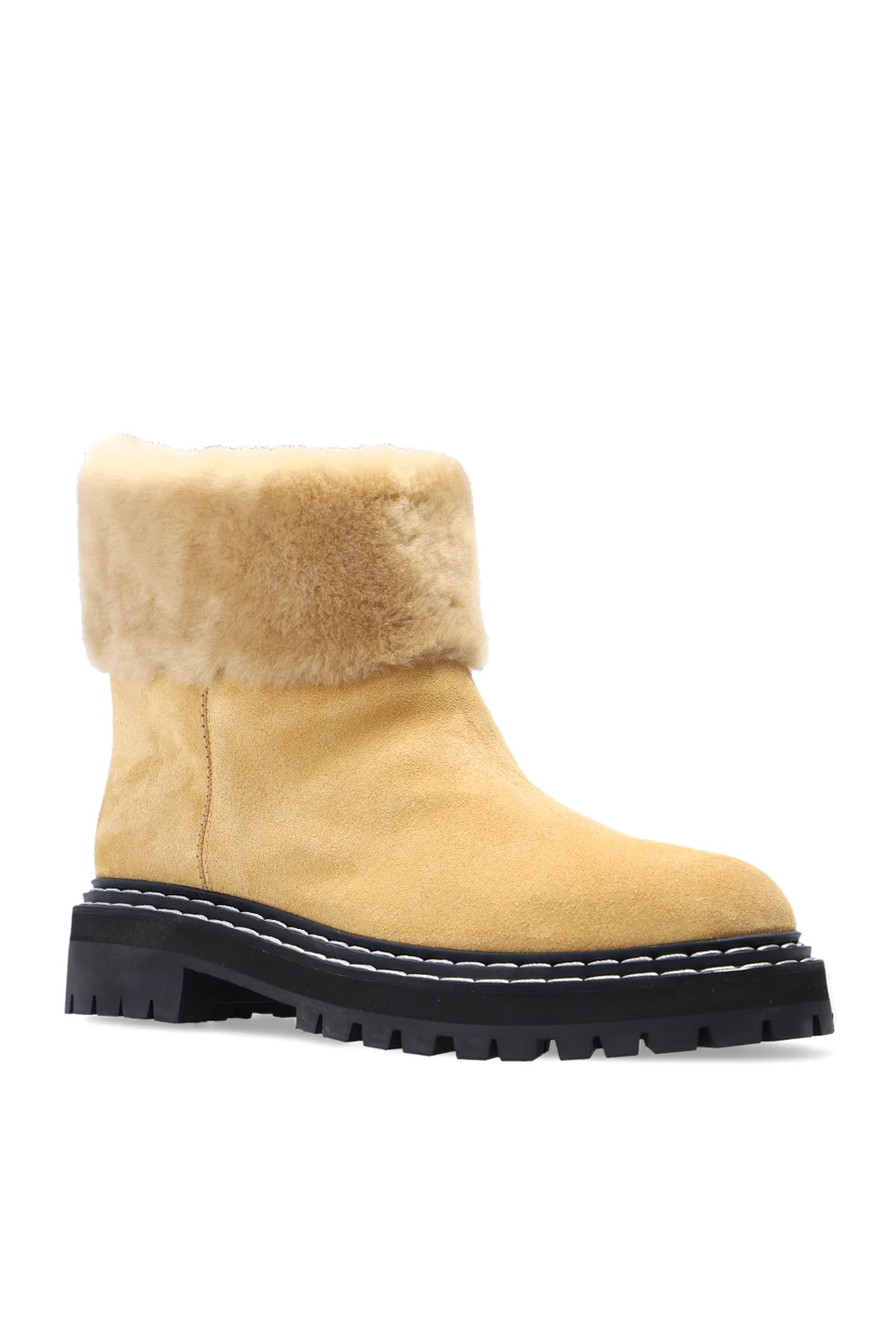 Beige ‘Peru Fiba’ slip-on ankle boots from Proenza Schouler. Crafted from suede, this pair features merino wool trims and a black rubber sole.