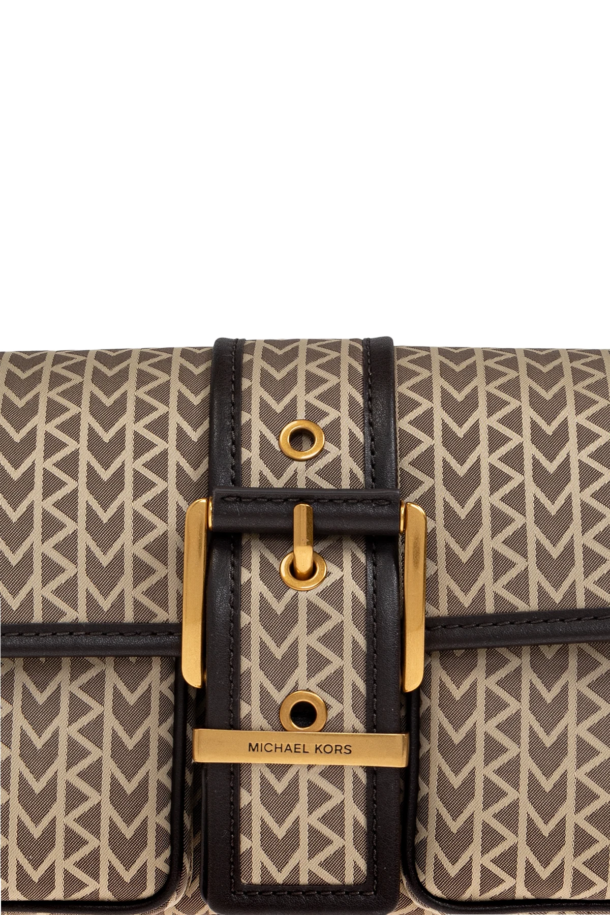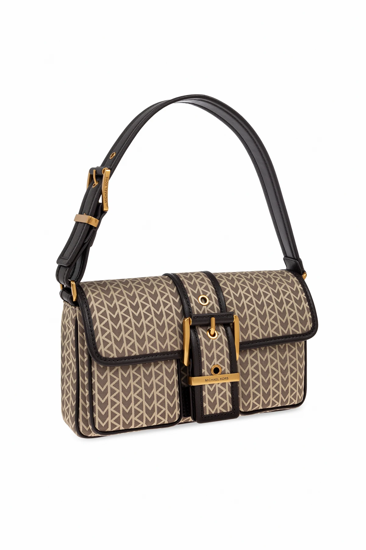 Das Herzstück der Tasche ist eine breite Lederschlaufe mit einer horizontalen Metallschiene, auf der das goldene MICHAEL KORS Logo eingraviert ist – ein Symbol weltweiter Handwerkskunst und reifer Eleganz. Der verstellbare Trageriemen ermöglicht eine perfekte Anpassung an individuelle Bedürfnisse und macht die Tasche zu einem zugleich praktischen wie auch außergewöhnlichen Accessoire.