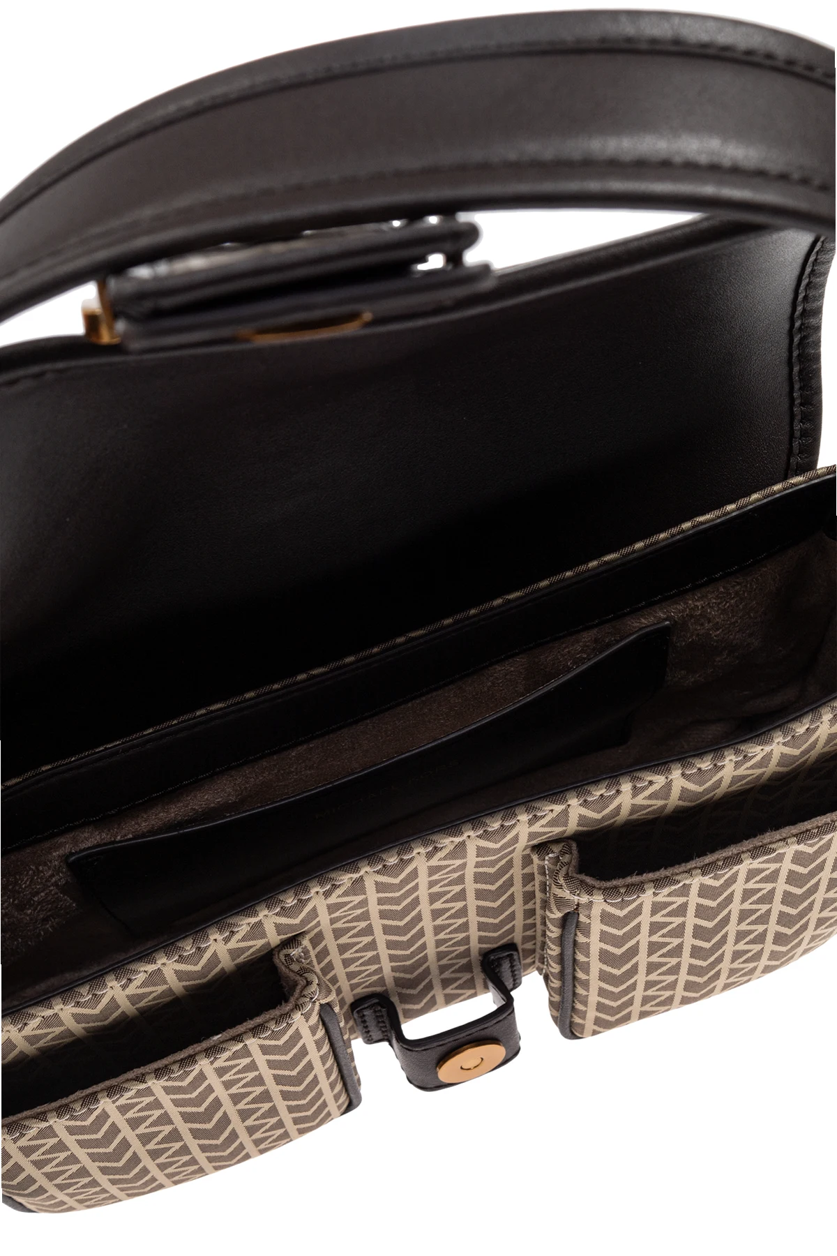 Die Handtasche Colby verkörpert höchste Raffinesse – sie vereint eine rechteckige Form und eine stabile, verstärkte Konstruktion mit einem Hauch subtiler Avantgarde. Das Obermaterial der Tasche besteht aus hochwertigstem Kunstleder oder Canvas, das mit dem ikonischen Fischgräten-Monogramm bedeckt ist – einem wiedererkennbaren Markenzeichen, das die gesamte Oberfläche in Braun- und Beigetönen ziert. Dunkelbraune Lederapplikationen und die ausdrucksstarke, goldene Schließe mit eleganten Nieten unterstreichen den luxuriösen Charakter dieses Produkts.