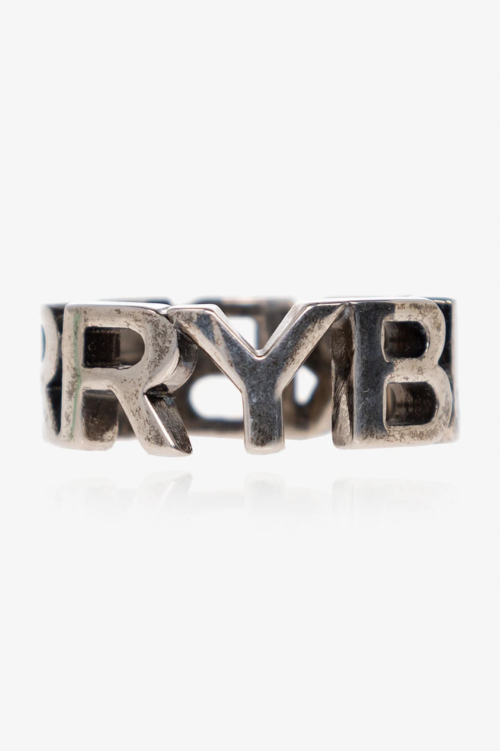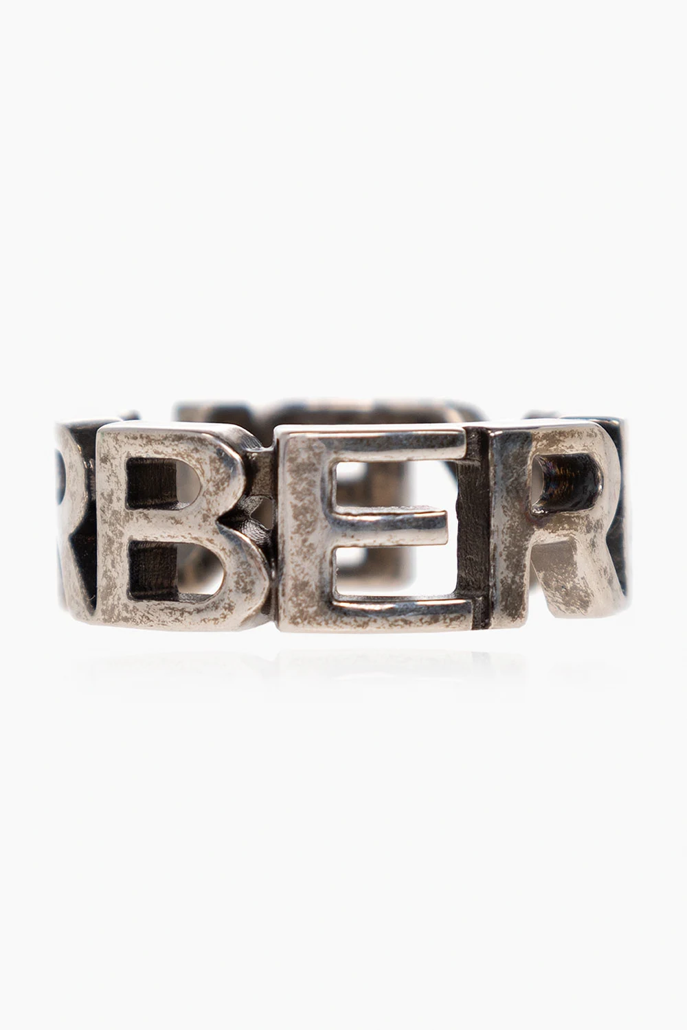Antique silver-tone ring with a logo from Burberry. Made of steel.