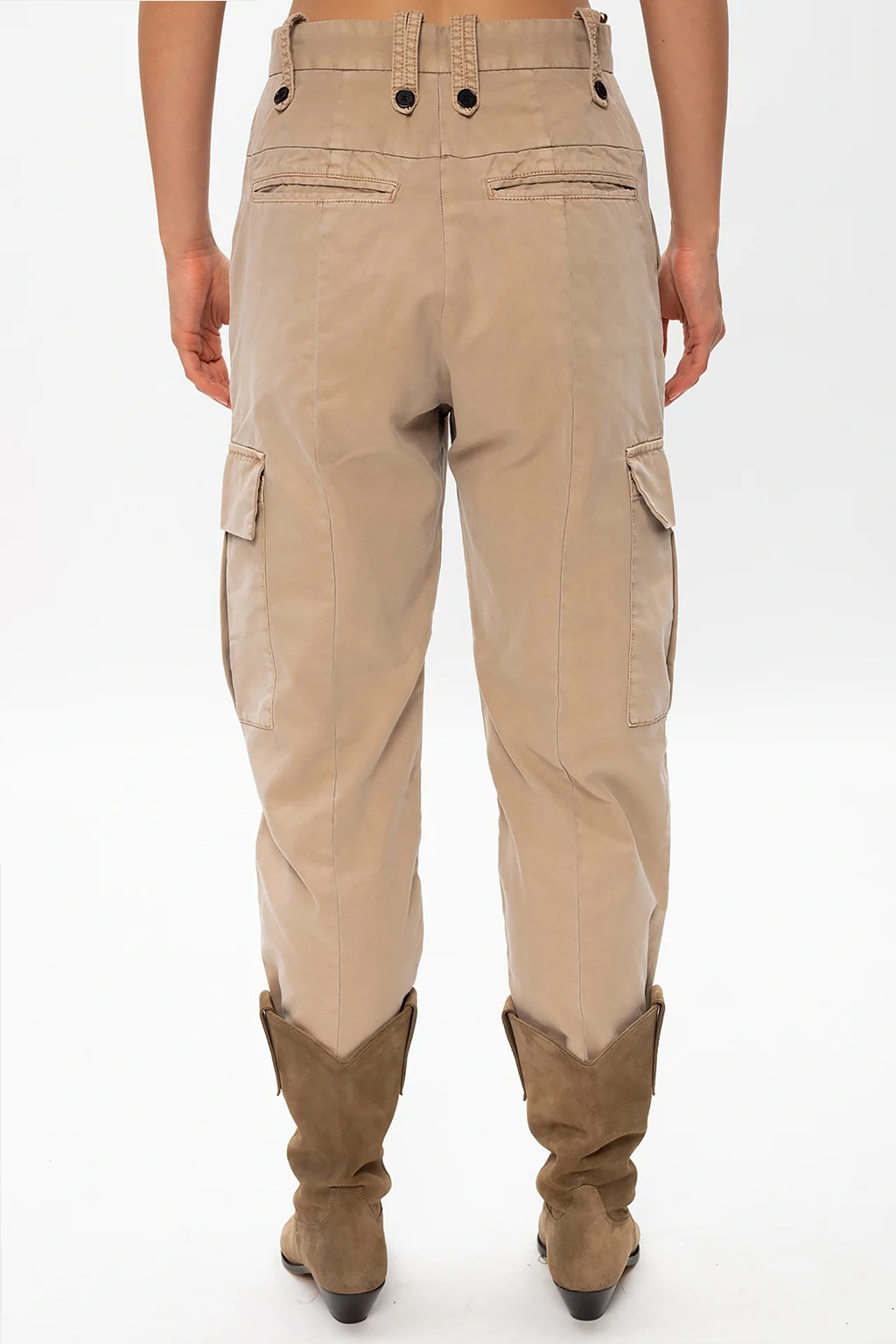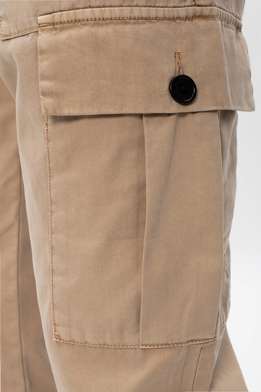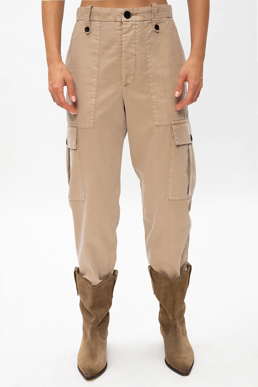 Cream trousers from Zadig & Voltaire. Designed with several pockets, this cotton pair sits high on the waist and is complete with button closing and tapered, cropped legs with raw edge cuffs.