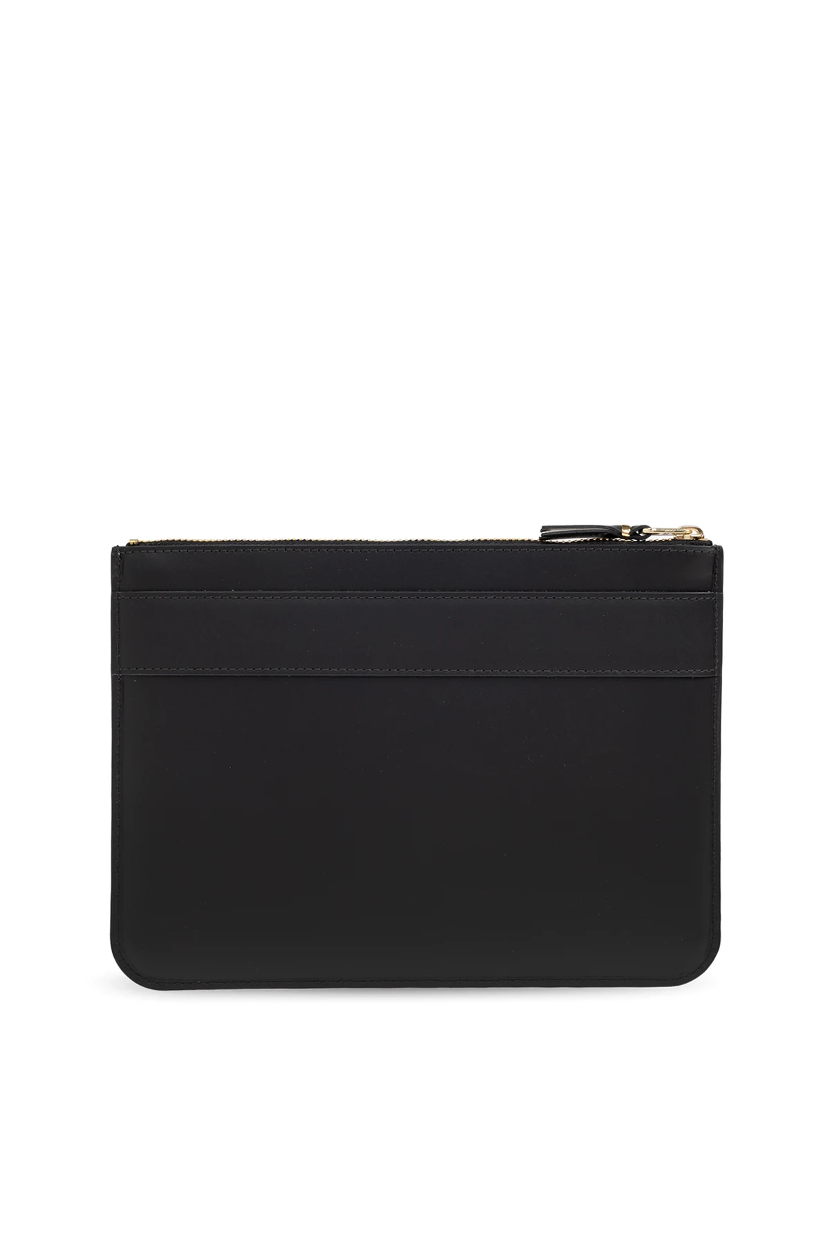 Hier ist die Ledertasche der Marke Comme des Garçons , die die Quintessenz von Eleganz und modernem Design darstellt. Die dominierende schwarze Farbe und die rechteckige Form machen sie zu einem unverzichtbaren Accessoire für jede Garderobe.