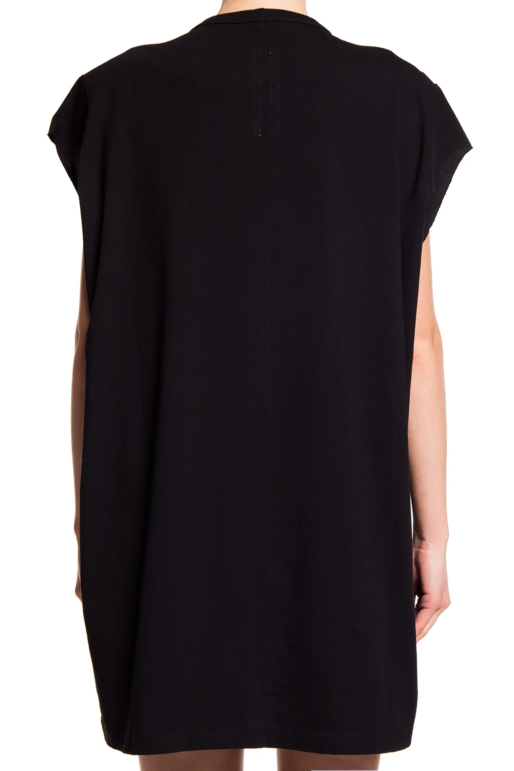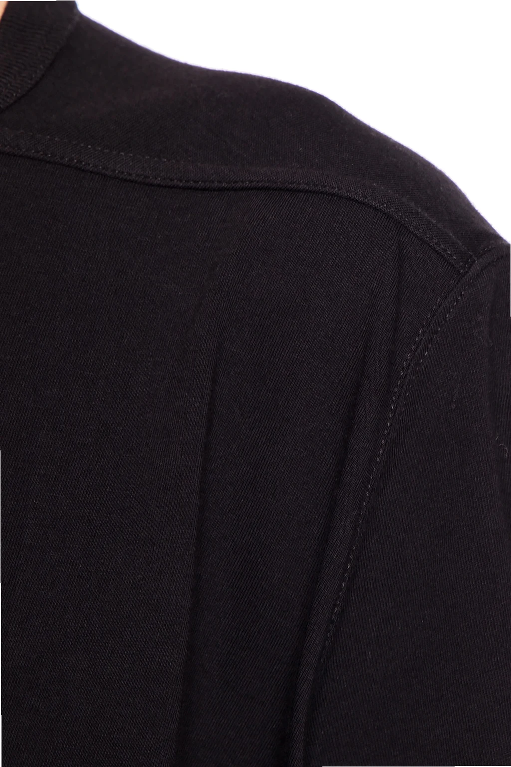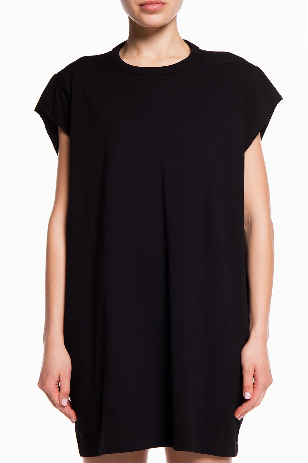 Black T-shirt with a raw trim from Rick Owens. Made of cotton. Round neck.