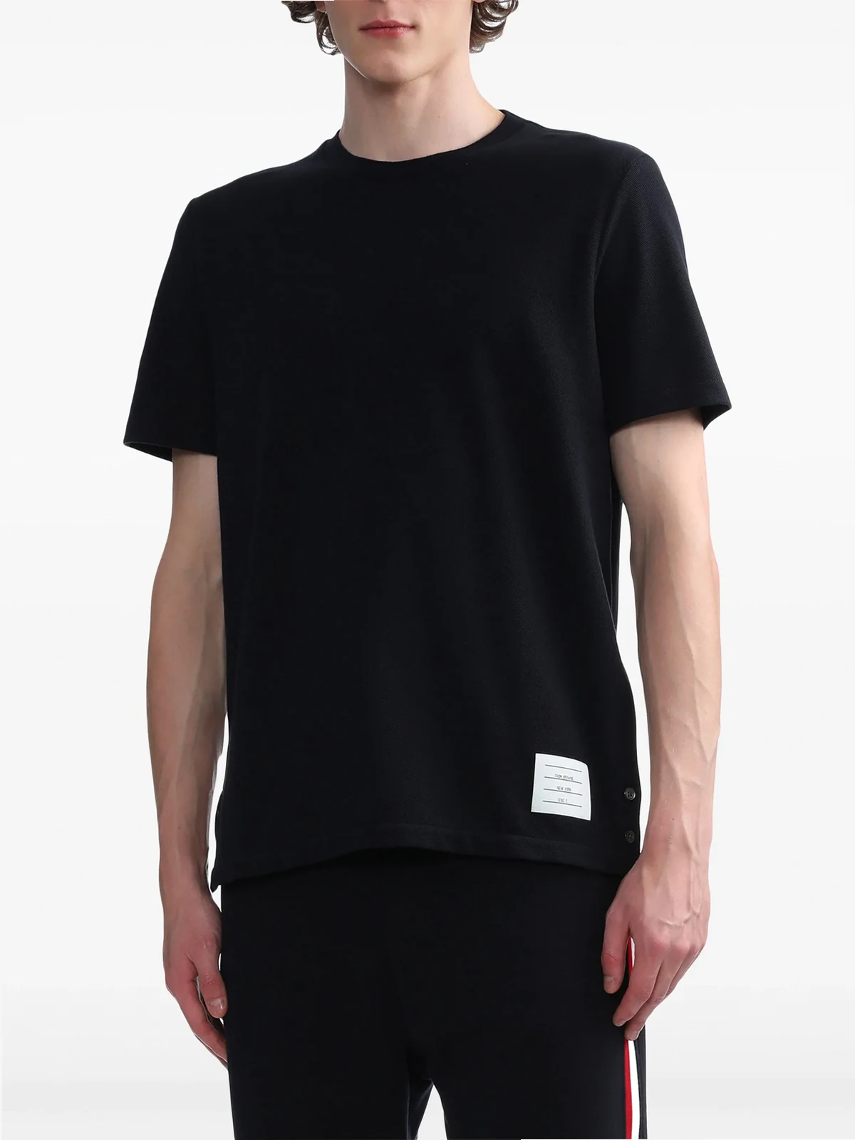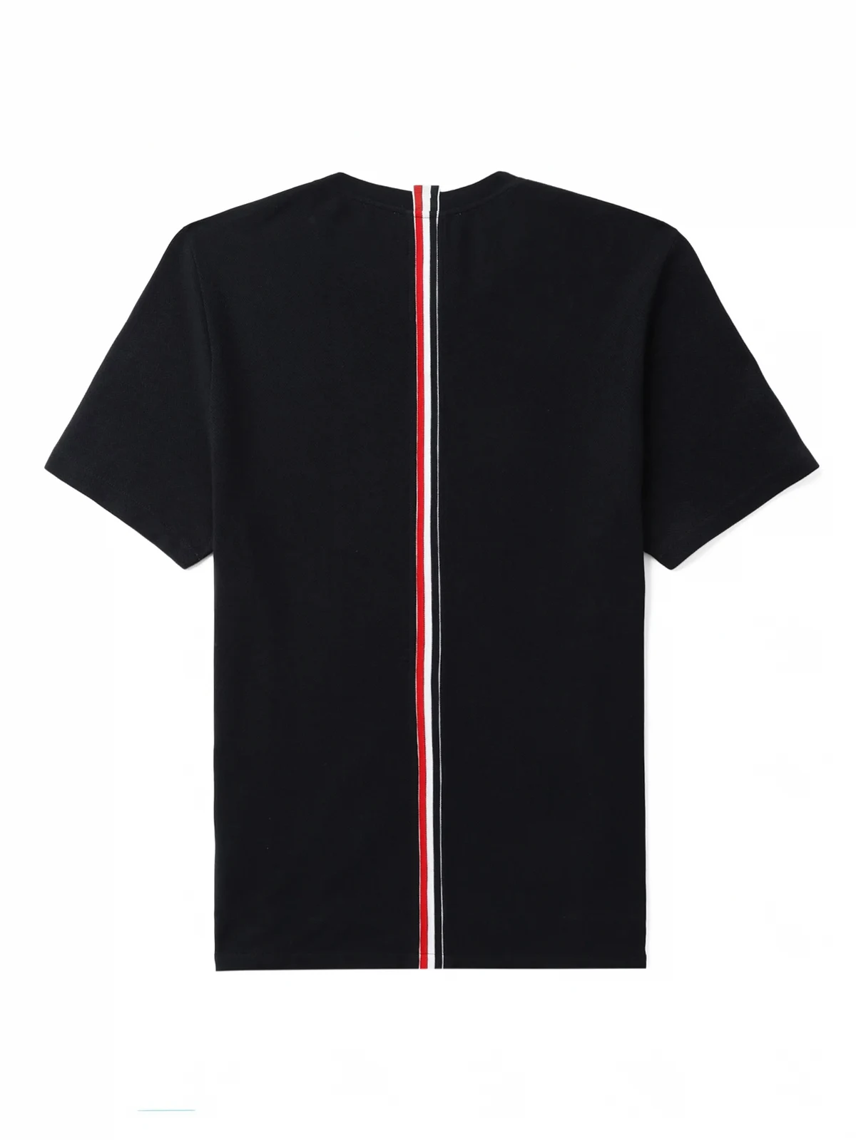 Dunkelblaues Poloshirt aus Baumwolle von Thom Browne mit folgenden Eigenschaften: gerippter Rundhalsausschnitt, kurze Ärmel, Streifendetail am Rücken und gerader Saum.