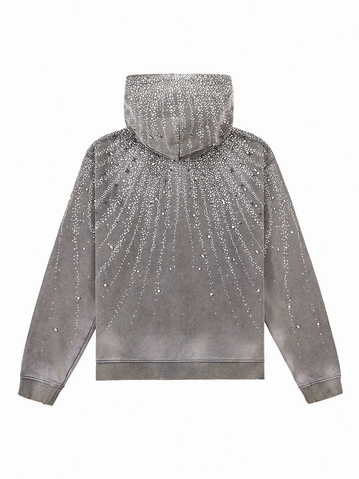 – Kastenförmiger Kapuzenpullover in Grau mit karierten Ärmeln im Bahnendesign