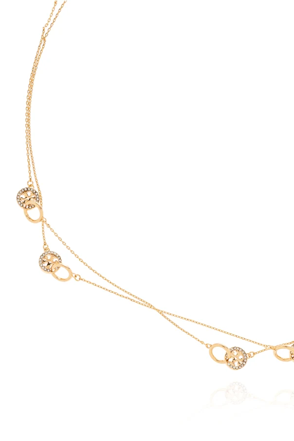 Die lange Halskette der Marke Tory Burch besticht durch raffinierte Schlichtheit und einen Hauch zeitloser Eleganz. Sorgfältig gefertigt aus Messing in einem wunderschönen Goldton , begeistert sie durch ihre dezent geschichtete Form – zwei feine Kettenstränge in unterschiedlicher Länge legen sich sanft um das Dekolleté und bilden eine harmonische Komposition.