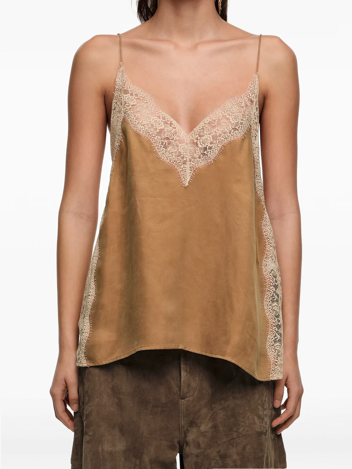 Oberteil mit V-Ausschnitt und Spitzenborte