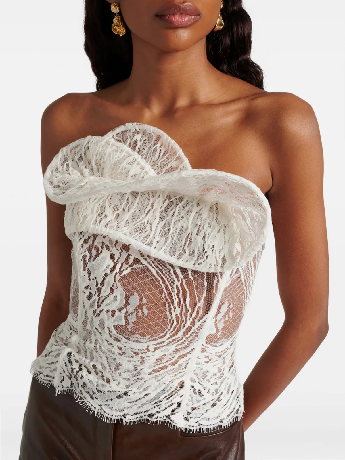 – Bluse aus durchscheinender Spitze in Schwarz mit Volantärmeln