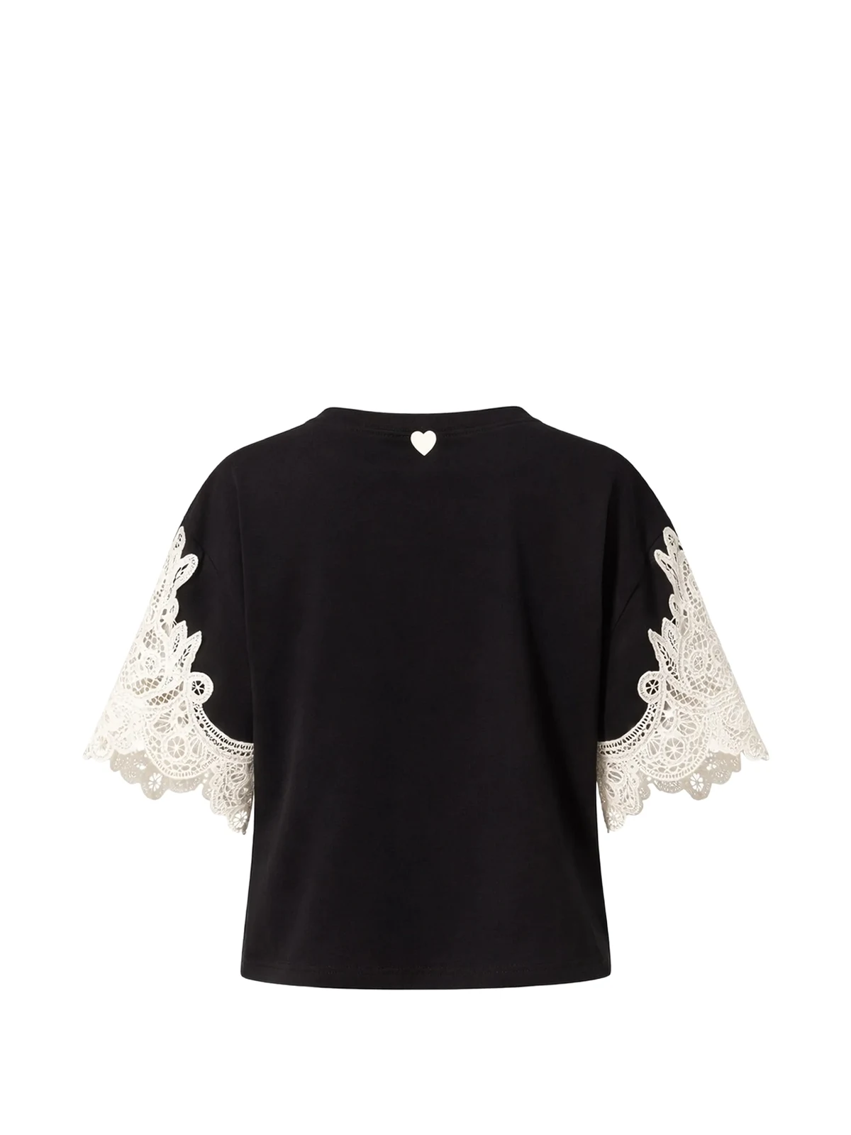 – Schweres, langärmliges kastiges T-Shirt in Schwarz und Weiß mit Streifen