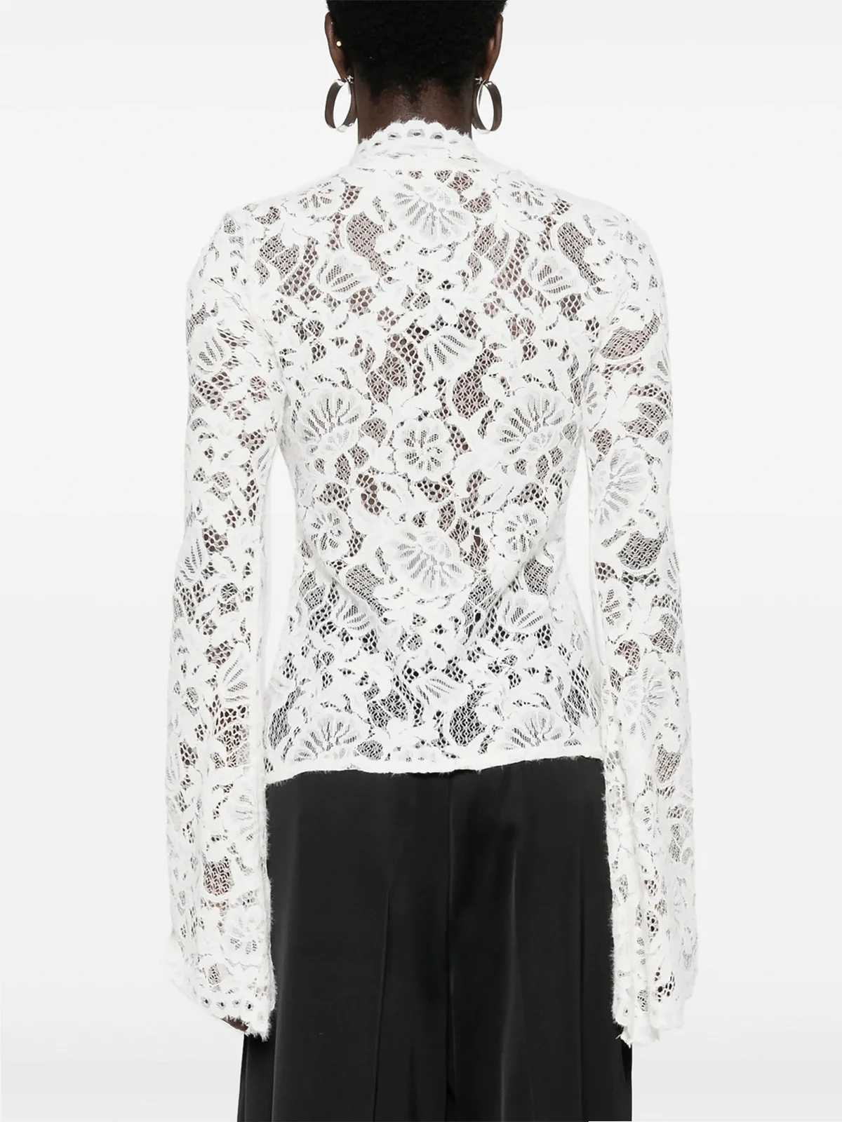 – Bluse aus durchscheinender Spitze in Schwarz mit Volantärmeln