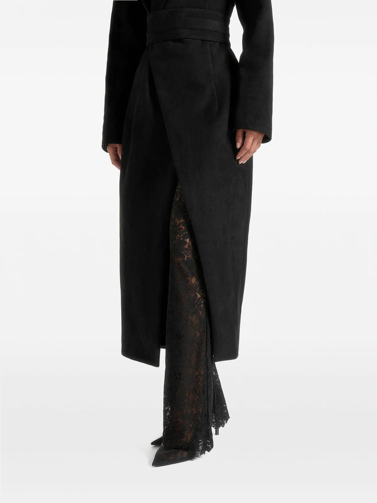 Asymmetrischer Esma Wildledermantel mit Gürtel
