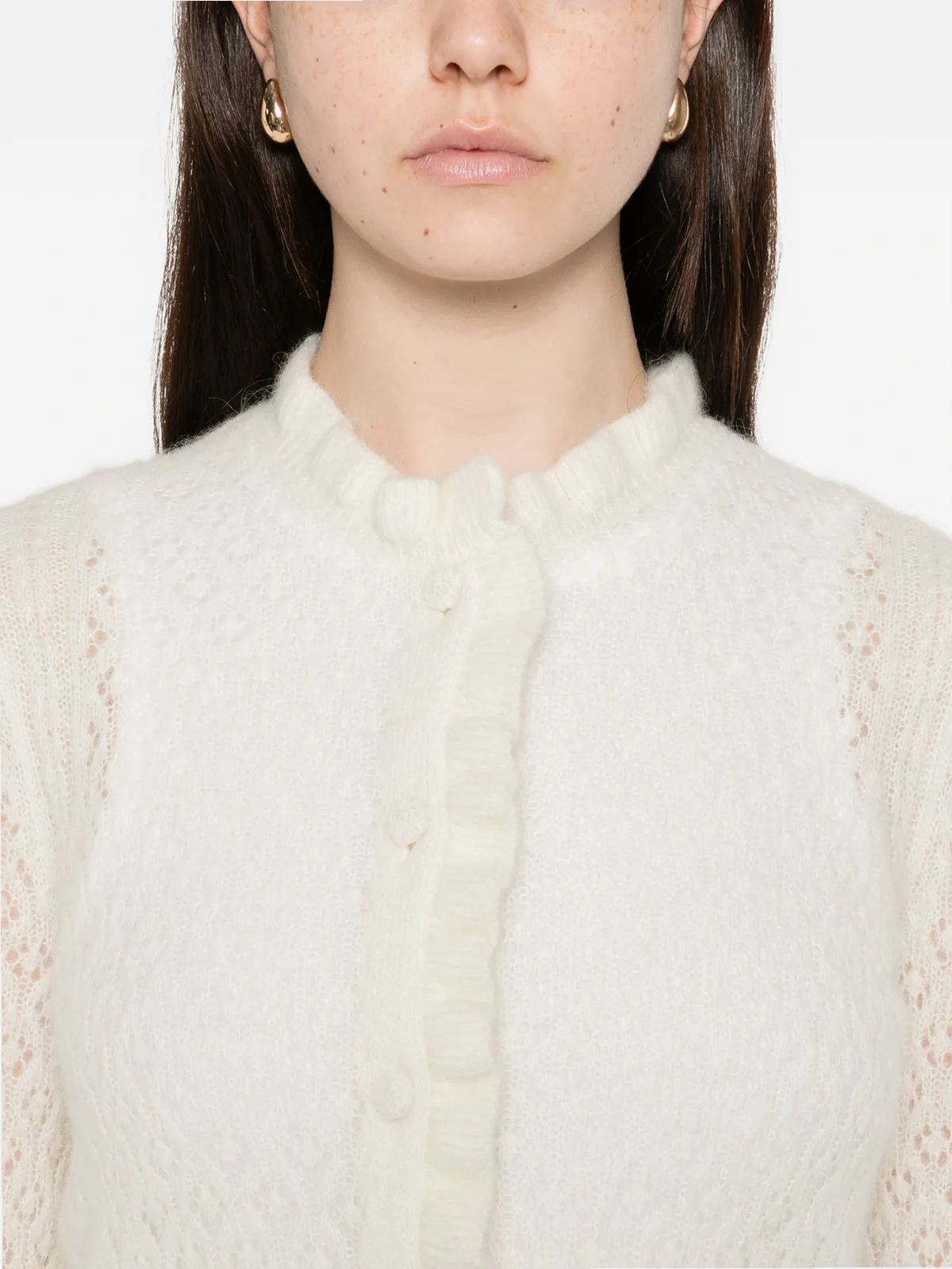 Perforierter Cardigan mit Rüschen