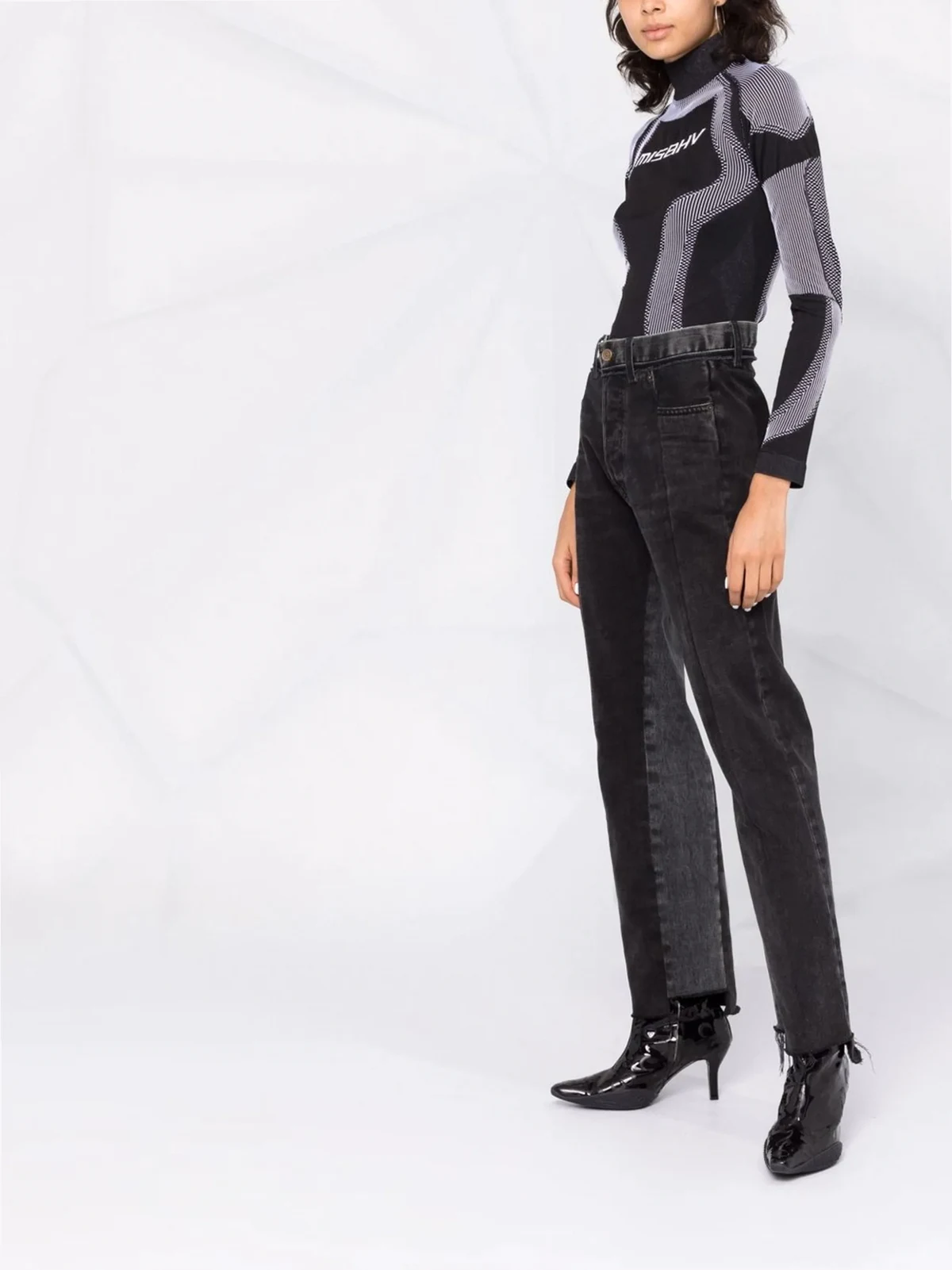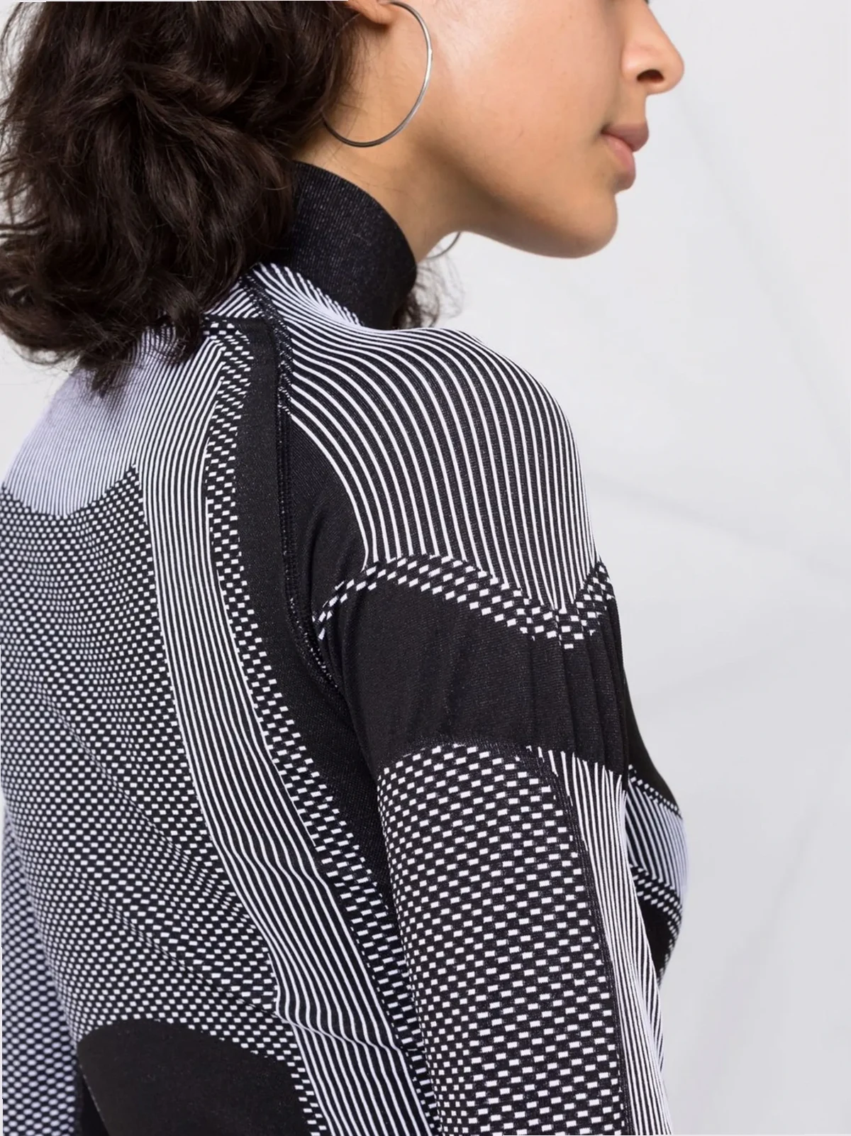 Zweifarbig, abstrakter Print, Stehkragen, lange Ärmel. .